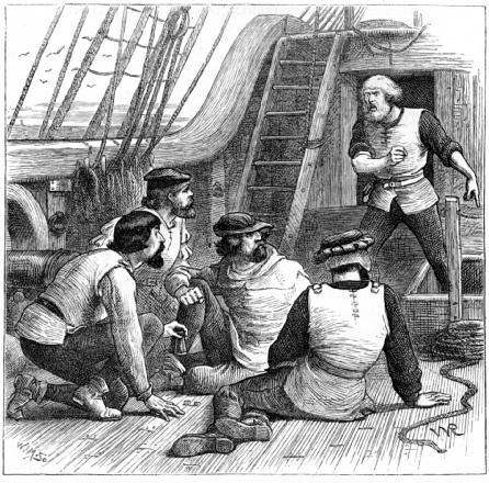 A brave young cabin loon's offert money and land by his Captain, if he'll sweem ower tae a French Galleon an ca holes in her side tae gar her sink. He taks the offer, sweems ower an sinks the ship nae bothir. But fan he gets back tae the Gouden Vanity the Captain reneges on his promise an winna haal him back on board. He wisna haein that though, an telt them he'd sink the Gouden Vanity as weel. That did the trick an they haaled him up and gaed him the rewards he wis promised.