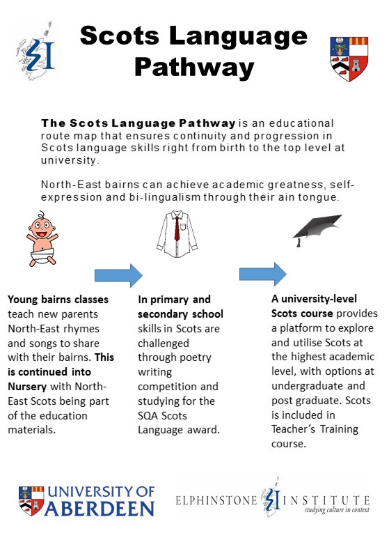 The Elphinstone Institute is committed to using its resources and expertise to promote the Scots Language Pathway in the North-East, from nursery through primary and secondary, to university education.