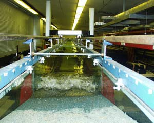 The random wave flume is used for a wide range of coastal and offshore engineering studies including: wave interaction with coastal structures such as seawalls and breakwaters; the dynamics of moored structures in waves; sea-cage and floating breakwater studies; wave energy studies; wave transformation in shallow water; wave behaviour at reefs, etc.