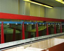 The random wave tank is 20m long, 0.45m wide and 0.9m high. It has a working water depth of 0.7m at the wave paddle. The wave frequency range is approximately 0.4 - 2Hz (0.5 - 2.5s wave period range); maximum wave height is stroke-limited at low frequencies and breaking-limited at high frequencies. The maximum wave height achievable is approximately 0.3m at a frequency of about 0.9Hz. The wave paddle is bottom-hinged and equipped with wave absorption control so that an extremely stable and predictable wave environment is produced, even for experiments involving structures with high levels of wave reflection. The paddle and data acquisition are computer controlled. Various waveforms can be generated, from simple single-frequency waves to complex seas synthesised from typical sea wave spectra. The flume is glass-sided throughout its length and it has a raised floor constructed from thick marine ply, making it easy to mount structures and equipment within the flume.