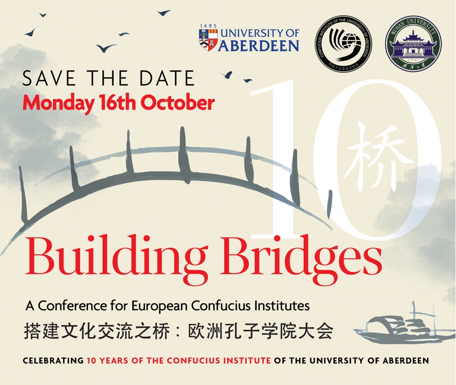 "Building Bridges: A Conference for European Confucius Institutes" is a special evening celebration commemorating the tenth anniversary of the Confucius Institute of the University of Aberdeen. Join us for a day of insightful discussions and an evening of festivities.