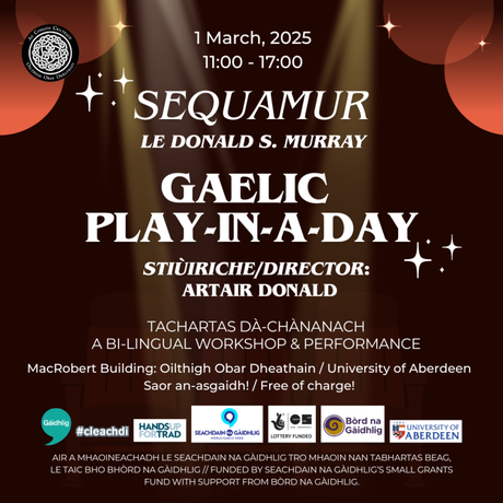This will be a bi-lingual workshop. We will putting on 'Sequamur' by Donald S. Murray (Gaelic translation by Catrìona Dunn), a play about WWI and the impact of war on communities. We are delighted that actor Artair Donald will be directing. All levels of Gaelic welcome! ‘S e buth-obrach dà-chànanach a bhios ann. Nì sinn 'Sequamur' le Donald S. Mhoireach (a' Ghàidhlig le Catrìona Dunn), dealbh-chluich mu dheidhinn a’ Chogaidh Mhòir agus a’ bhuaidh mhòr a th’ aig cogaidhean air coimhearsnachdan. Tha sinn air ar dòigh gum bi cleasaiche Artair Donald a' stiùireadh. Freagarrach airson gach ìre de Ghàidhlig!