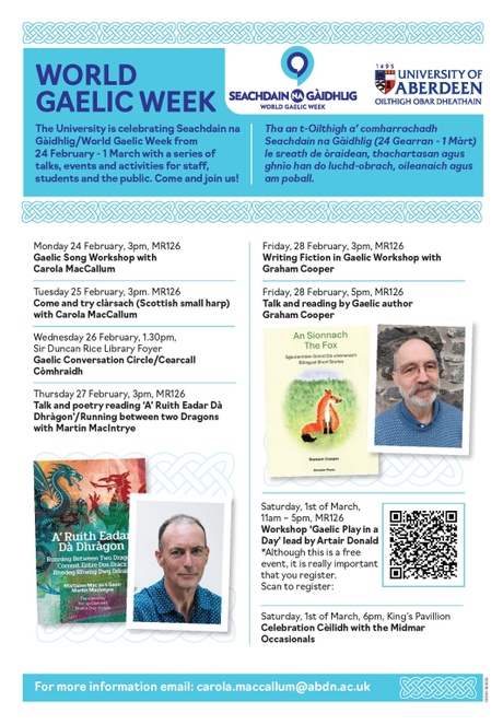 The University is celebrating Seachdain na Gàidhlig/World Gaelic Week with a series of talks, events and activities for staff, students and the public. Come and join us!