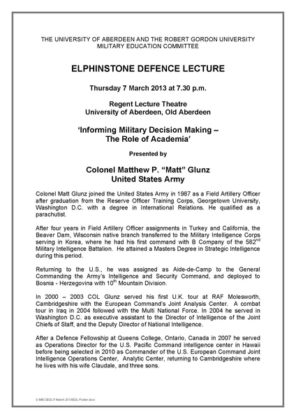 The University of Aberdeen and the Robert Gordon University Military Education Committee
