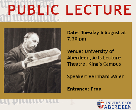 As part of the International Organization for the Study of the Old Testament (23rd Congress of IOSOT) the lecture will be presented by Bernhard Maier on “Between Pietism and Totemism: The Old Testament in the Letters of William Robertson Smith”. The public lecture will be devoted to one of the greatest scholars produced by Aberdeen, William Robertson Smith (1846-1894), who is considered by many as one of the two or three greatest Old Testament scholars of his century - and as one of the founding fathers of social anthropology. A ‘son of the manse’, Smith embodied the tension between the worlds of faith and scholarship, exemplified in the heresy trial he underwent in his church.