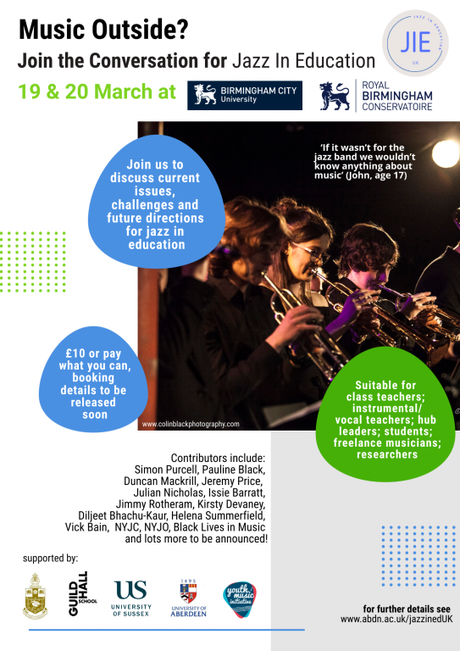 The conference entitled ‘Music Outside: Join the Conversation for Jazz in Education’ will be held at the Royal Birmingham Conservatoire and Birmingham City University