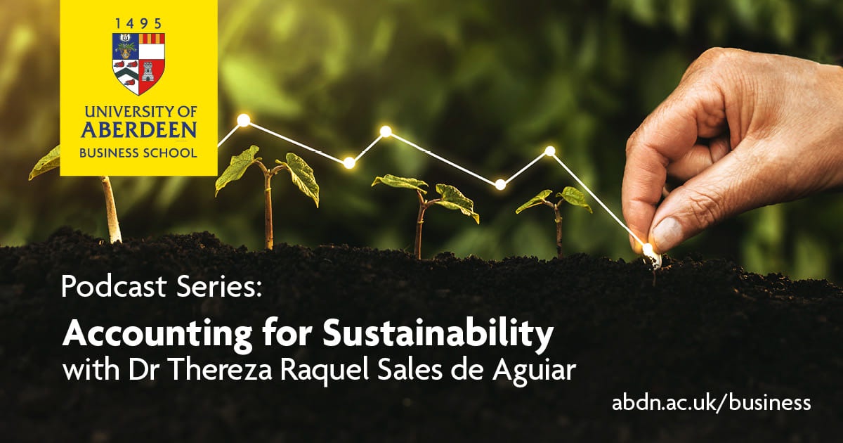 Accounting for Sustainability is a podcast series hosted by Dr. Thereza Raquel Sales de Aguiar, Senior Lecturer in Accountancy at the University of Aberdeen Business School.