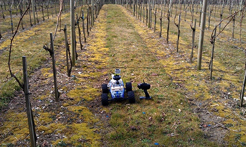 A ground-based 4x4 model vehicle is being trialled for the collection of between row and canopy side-view image and data acquisition.