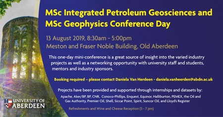 The School of Geosciences is delighted to invite you to attend the presentation of final applied research projects by the 2019 MSc Integrated Petroleum Geosciences and MSc Geophysics cohort.