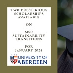 The Department of Geography & Environment is happy to announce that there are two prestigious scholarships available on MSc Sustainability Transitions - one of the University of Aberdeen's flagship sustainability programmes.