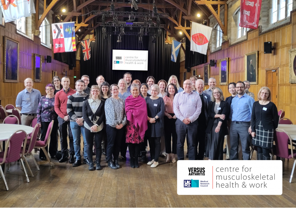 Delegates and presenters assembled from across the Centre’s 9 key academic institutions, representatives from our funder Versus Arthritis and external guests including the University of Leeds, the Department for Work and Pensions, and Universal Inclusion as we continue to focus on how best to generate impact on policy and practice from our research.