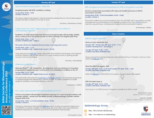 - You can find out more about about our presentations at BSR 2025, including findings from the BSR-PsA and VOICES studies, via our conference schedule below: