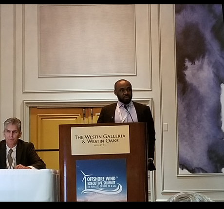 The conference was well attended by top industry experts, regulators and other stakeholders. We had breakfast (which was provided for us) and the conference began. The first set of speakers gave their keynote speeches which were all focused on the many benefits of offshore wind and how Houston was well positioned to be the offshore wind energy capital of the world. This position is currently held by the UK. After other sessions on permits and environment protection, it was time for my panel discussion, where I presented on health and safety risks and how they can be regulated.