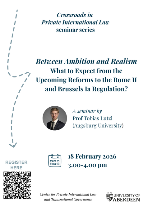 The Centre for Private International Law & Transnational Governance invites you to attend the next seminar in our Crossroads in Private International Law seminar series. You can find the link to register at the bottom of this page.