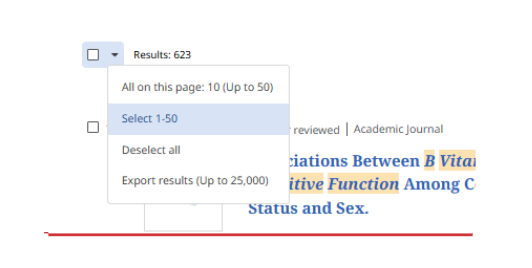Please note: You will need to create a MyEBSCO account to export more than 50 results at a time. Please see the Personal Account section below for instructions on how create an account.