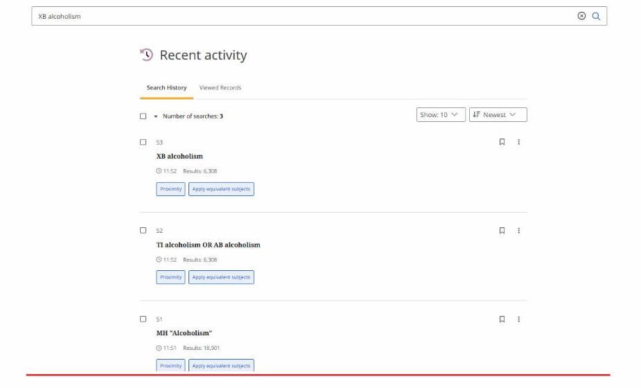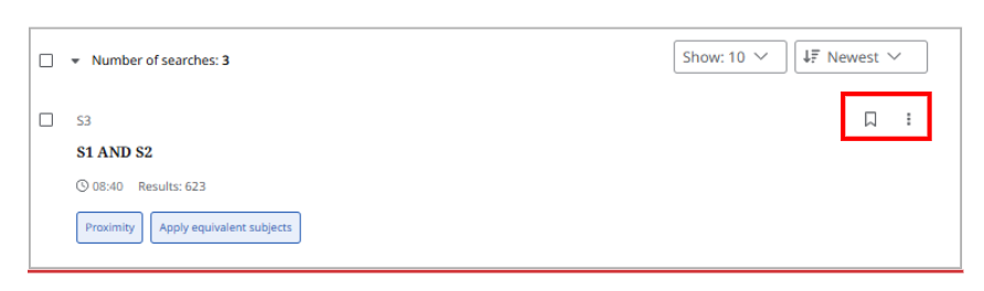 - Within Search History you can either save the search or add it to a project folder, so you can retrieve it later. To do this you can select the bookmark icon next to the search string or the