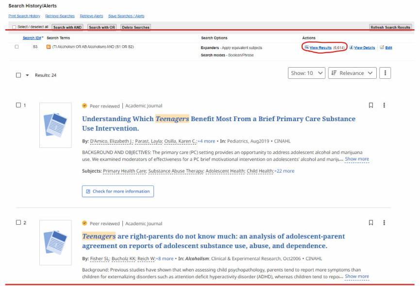 6. To combine your searches, see section on Combining your terms and limiting your results.