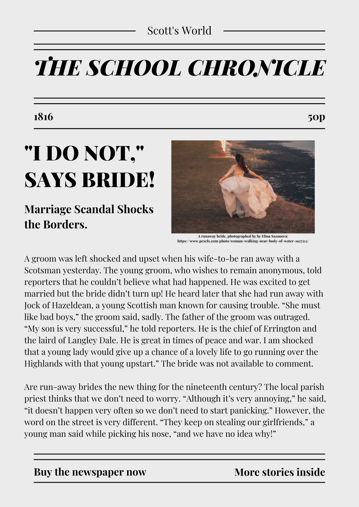 'Jock of Hazeldean' is a ballad by Walter Scott. It tells the story of a young woman who choses to marry Jock instead of the young man that everyone wants her to marry. The ballad has four stanzas and is fairly straightforward for pupils to understand. The activity works though the poem slowly.