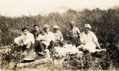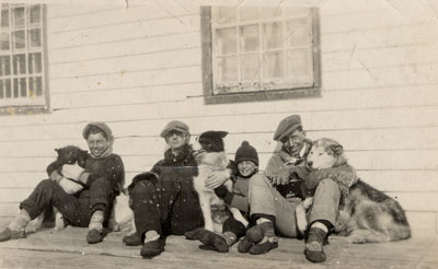 HBCA employees Charles Stephen, John Payne, Bill Watt and Gordon Webster relaxing at Fort Chimo, c. 1926.