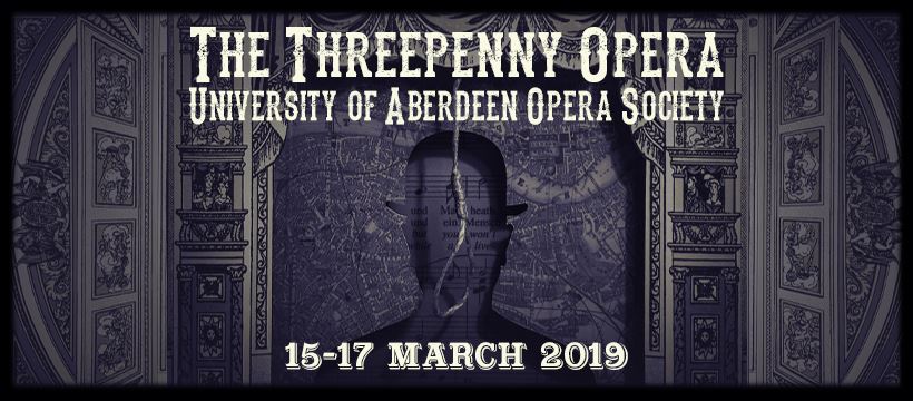 The Threepenny Opera will be performed in the Arts Lecture Theatre, William Guild Building, University of Aberdeen on Friday, Saturday and Sunday starting at 7.30pm. Tickets are £15 with student/concession tickets available for £5. They can be booked in advance at www.aberdeenperformingarts.com or purchased on the door.