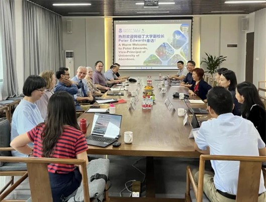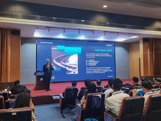 During the visit, Peter Edwards met South China Normal University President Enke Wang, Vice President Zhongmin Yang, and Member of the Chinese Academy of Engineering Nanshan Zhong. He was invited to give remarks on the Ceremony and a keynote speech at the Forum. Harminder Battu, Katja Christie, Aladdin Ayesh and John Skatun from the University of Aberdeen also participated in these activities.