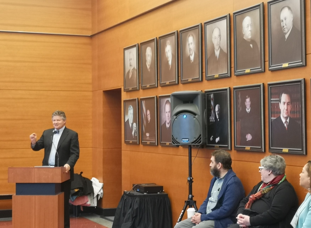 There was a very warm welcome from the chief judge of the Minneapolis court in the Court building overlooking City Hall in a snow storm. For more than 10 years they have worked with the local lawyers to ensure that clients who try to represent themselves have the opportunity of lawyer support in a settlement discussion process if they want to use it.