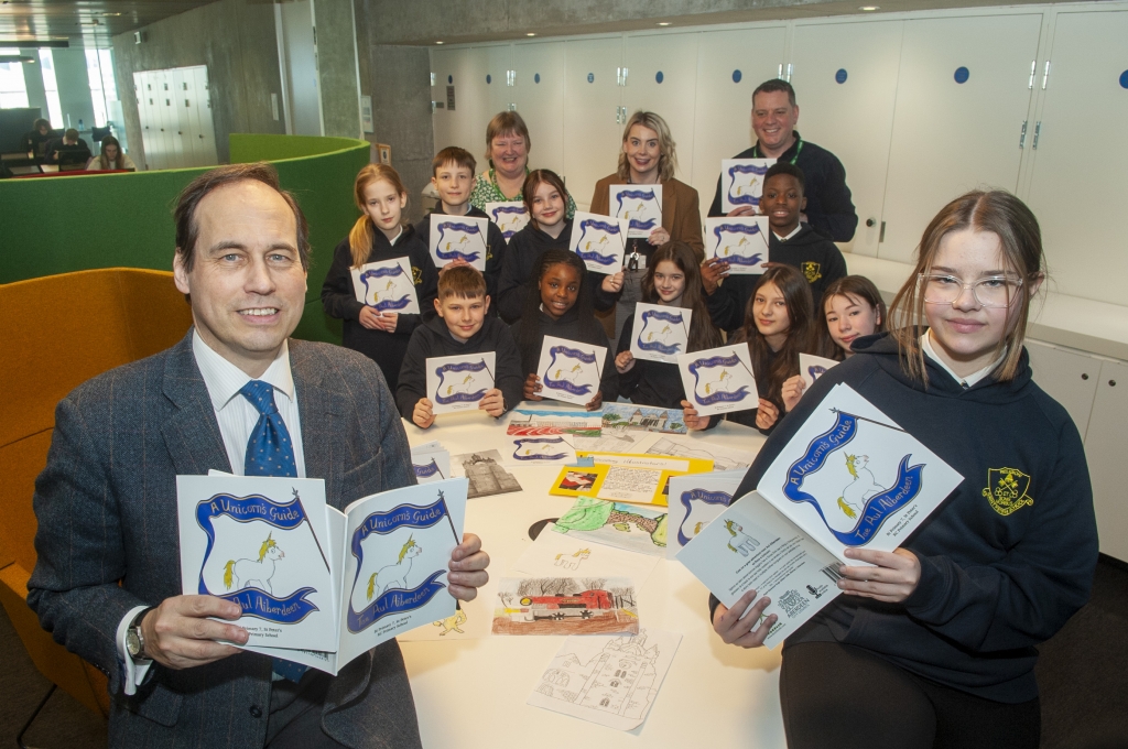 Pupils at St Peter's Roman Catholic School are taking readers on a magical journey through Old Aberdeen following the launch of their Doric titled book 'A Unicorn's Guide Tae Aul Aiberdeen' which was launched on Monday (4 March 2024) at the University of Aberdeen's Sir Duncan Rice Library.