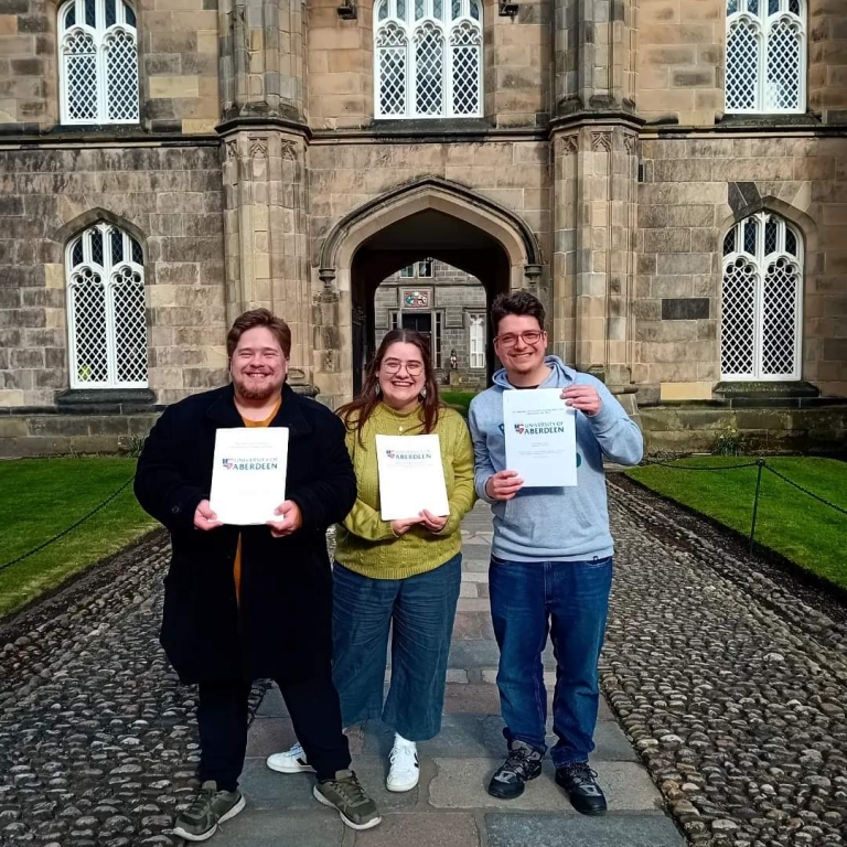 Anna, John and Josh will be awarded their degrees from the University of Aberdeen during the same ceremony on Tuesday June 25 – all achieved with first-class honours.