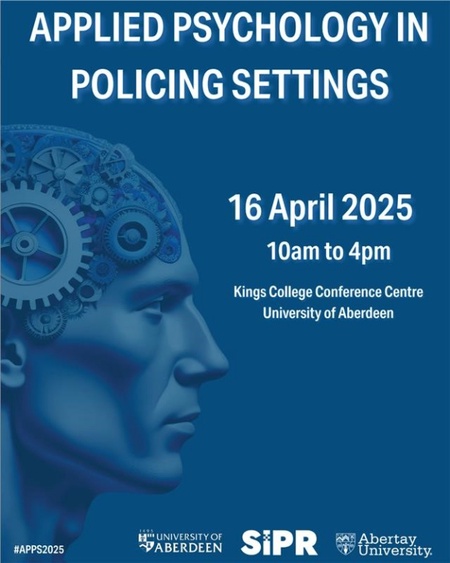 Free to attend, Applied Psychology in Policing Settings 2025 will take place on 16 April, 10am to 4pm, at the University of Aberdeen King’s College Conference Centre. You can book your place and find out more here.