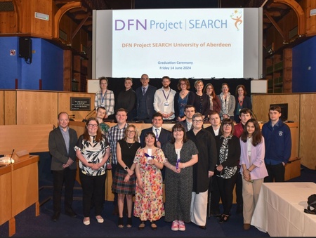 The ceremony celebrated the achievements of the class of 2023/24 who graduated from the DFN Project SEARCH programme - a collaborative project which provides real-life work experience, combined with training in employability and independent-living skills, to young people with learning disabilities and/or autistic spectrum conditions who want to go on to find paid employment.