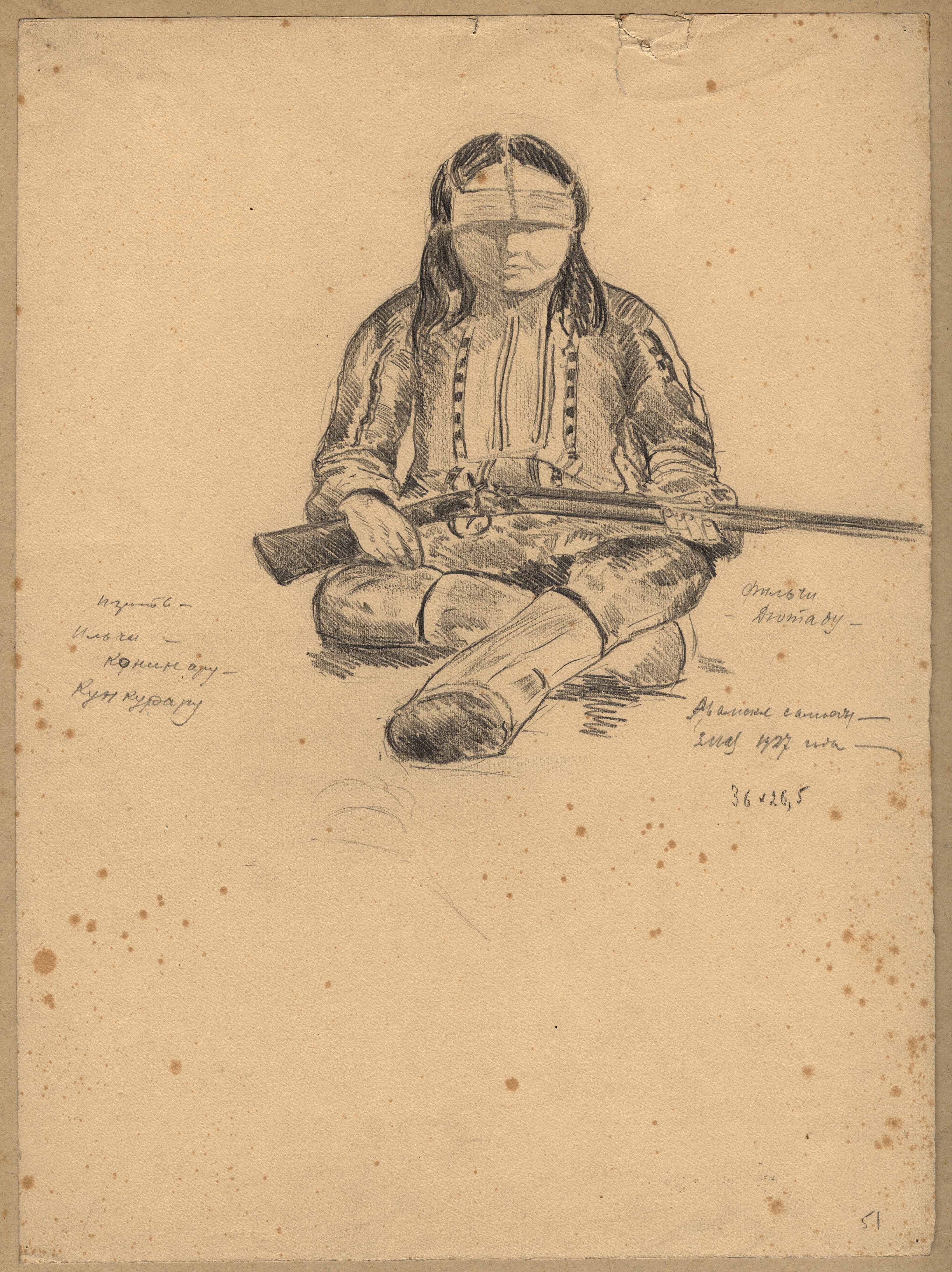 Inscription on the drawing: "To play Il'chi Koninaru Kunkuraru. Fil'chi Diutadu. Avamskie Samoedy. 3 May 1927" Number 58 in the museum catalogue of drawings by Lekarenko