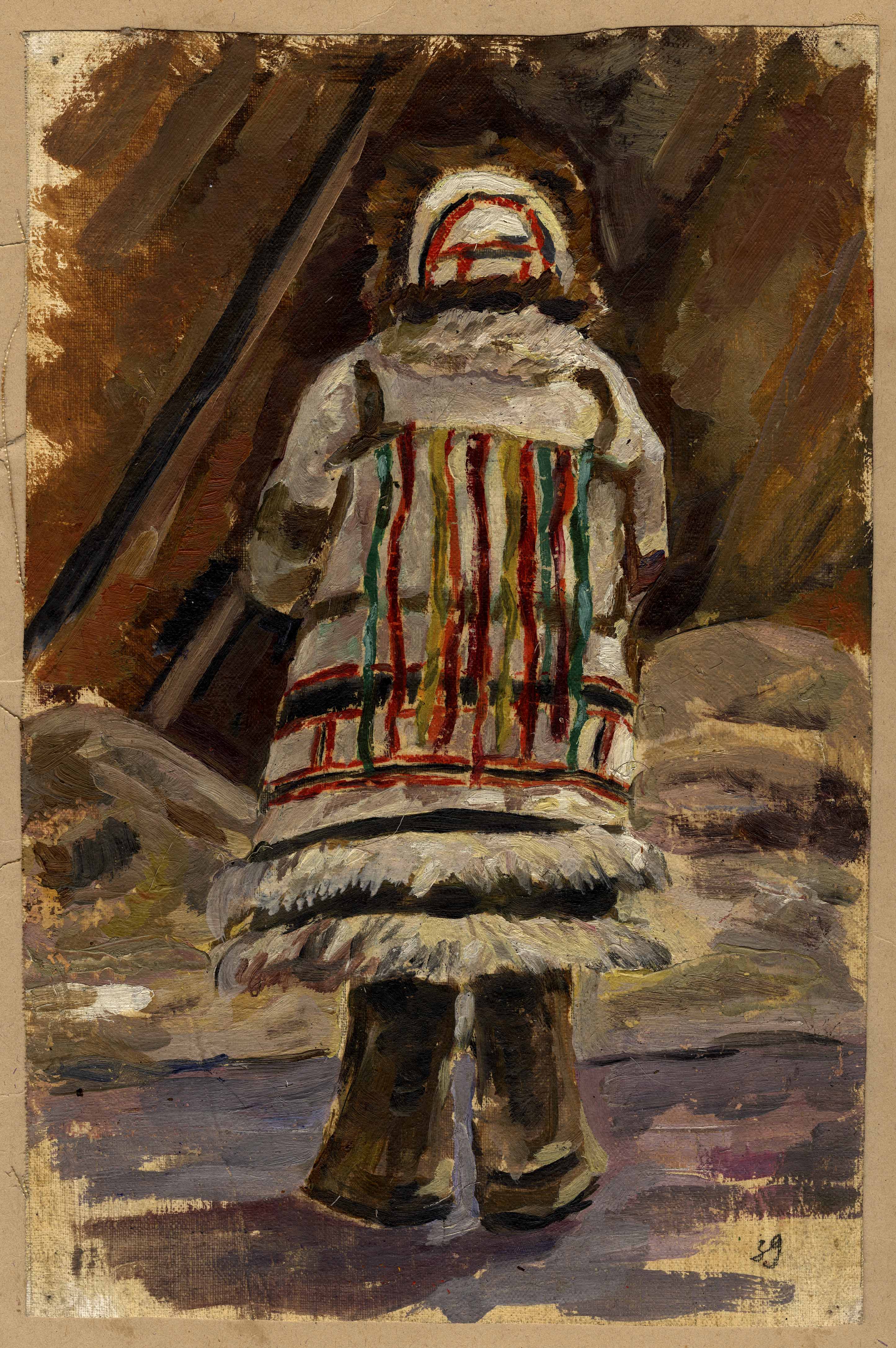 Added is a large format scanned picture from the catalogue "Siberian Ethnography in works of Krasnoiarsk artists (1920s) Karatanov D.I., Lekarenko A.P., Vargin A.G."