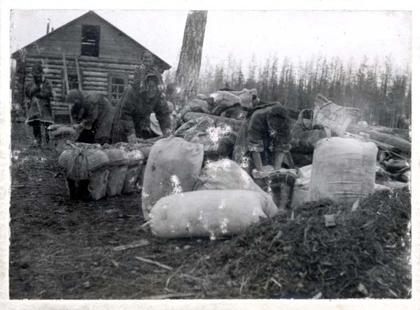 Примечания. 22 - 23 апреля 1927 г. Фотография должна быть Сушилина. (Топчут муку. Набивка турсуков. Стрелка Чуни. XII участок.