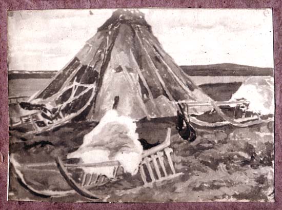 Надпись на рисунке: Чум Нёра - Самоеды - 21 (или 26) апреля 1927 г.