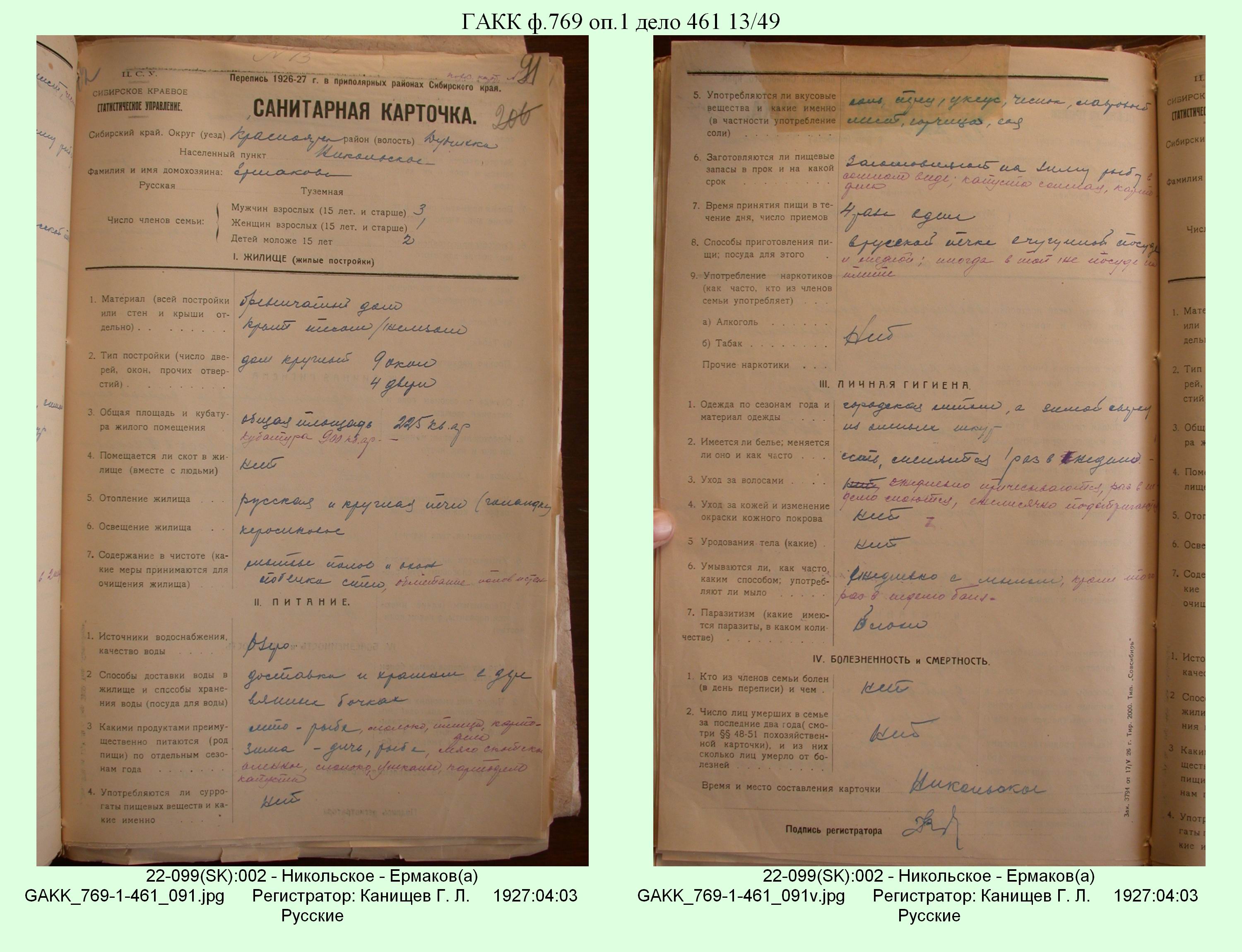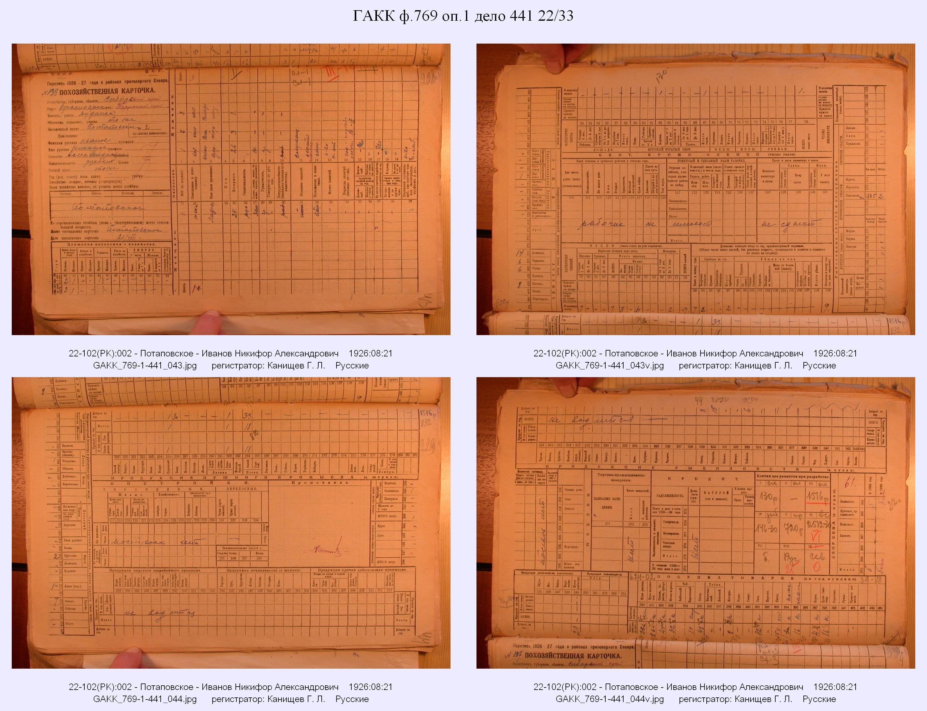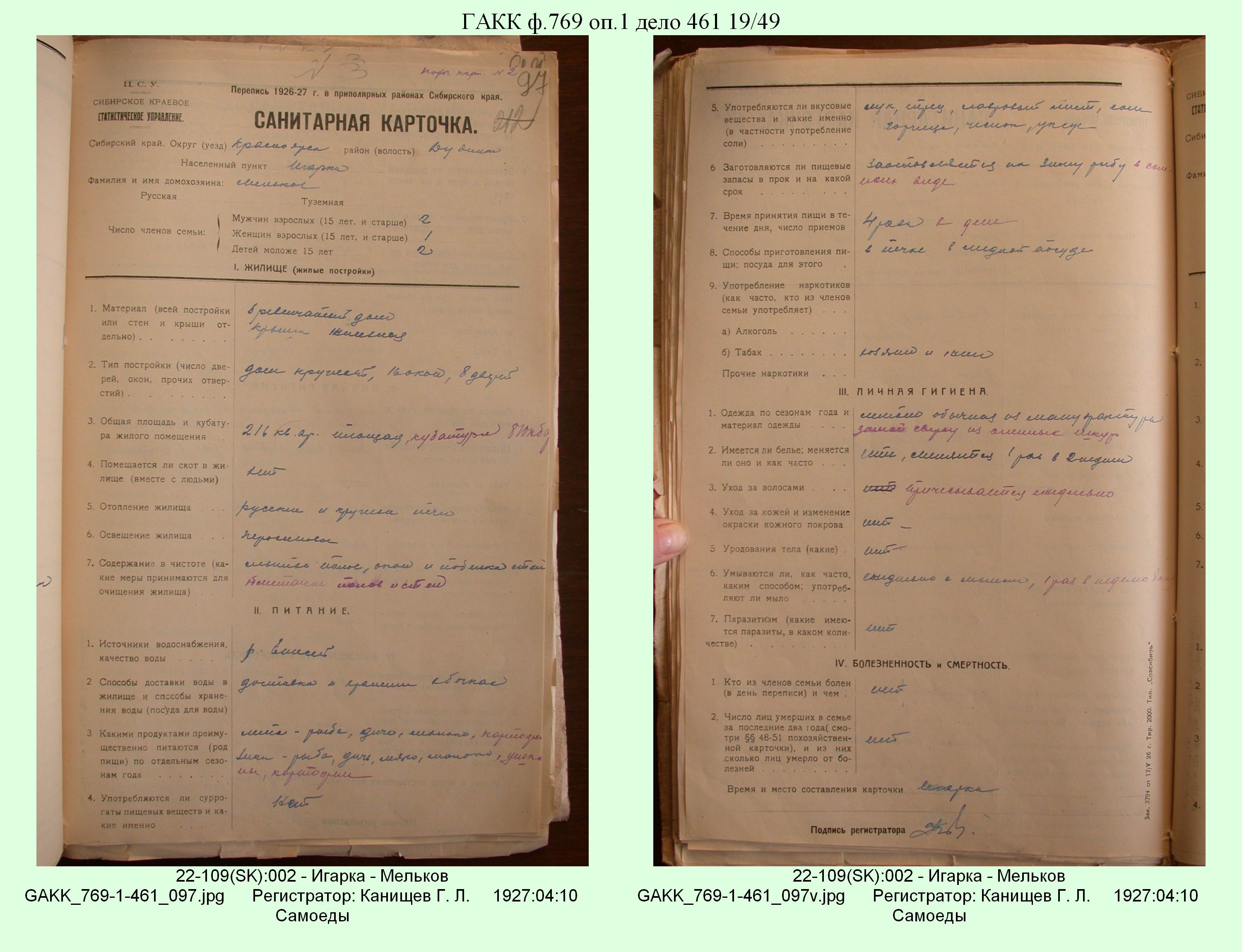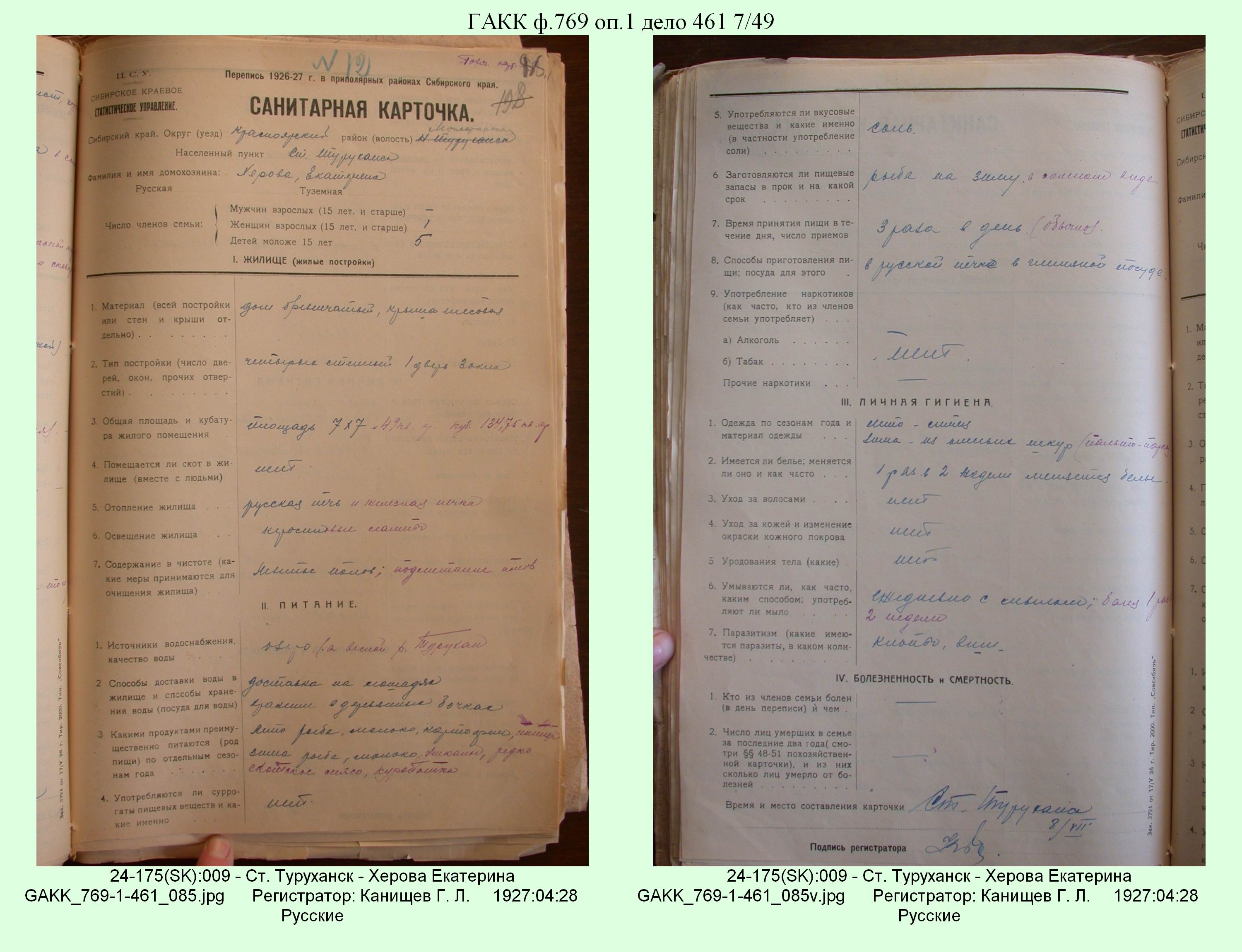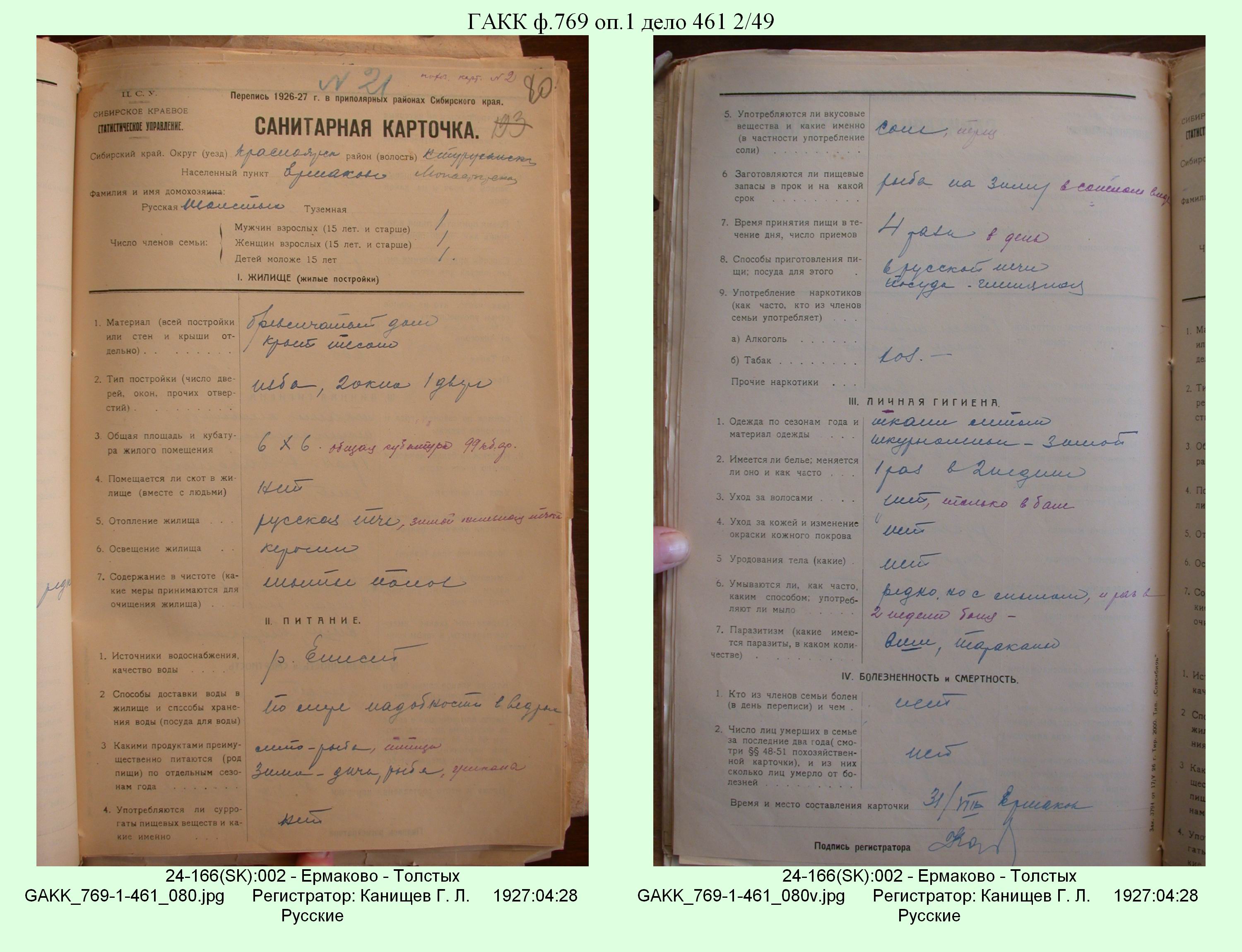 Маршрут и документы по переписи К.Л.Канищева (IV и V участки)