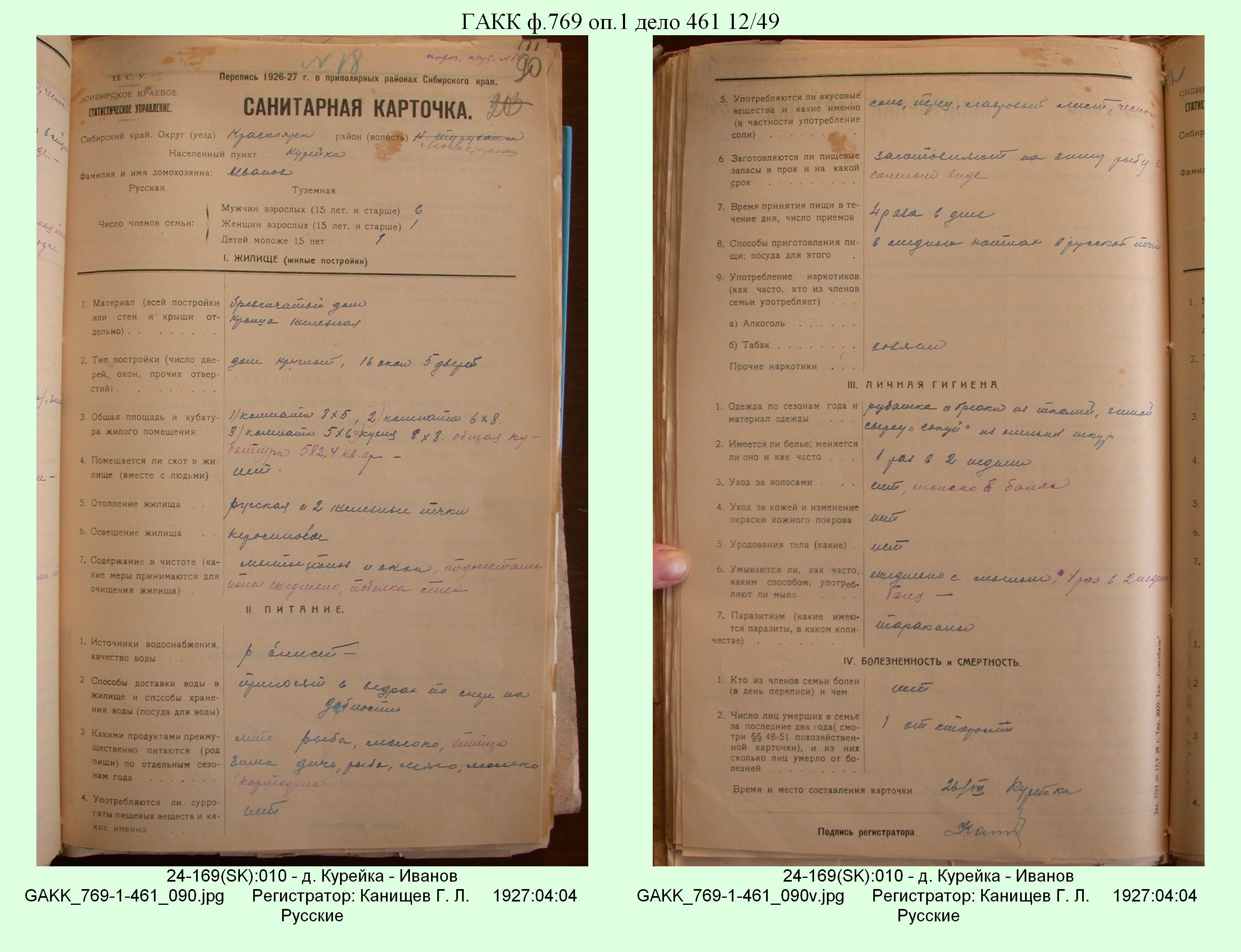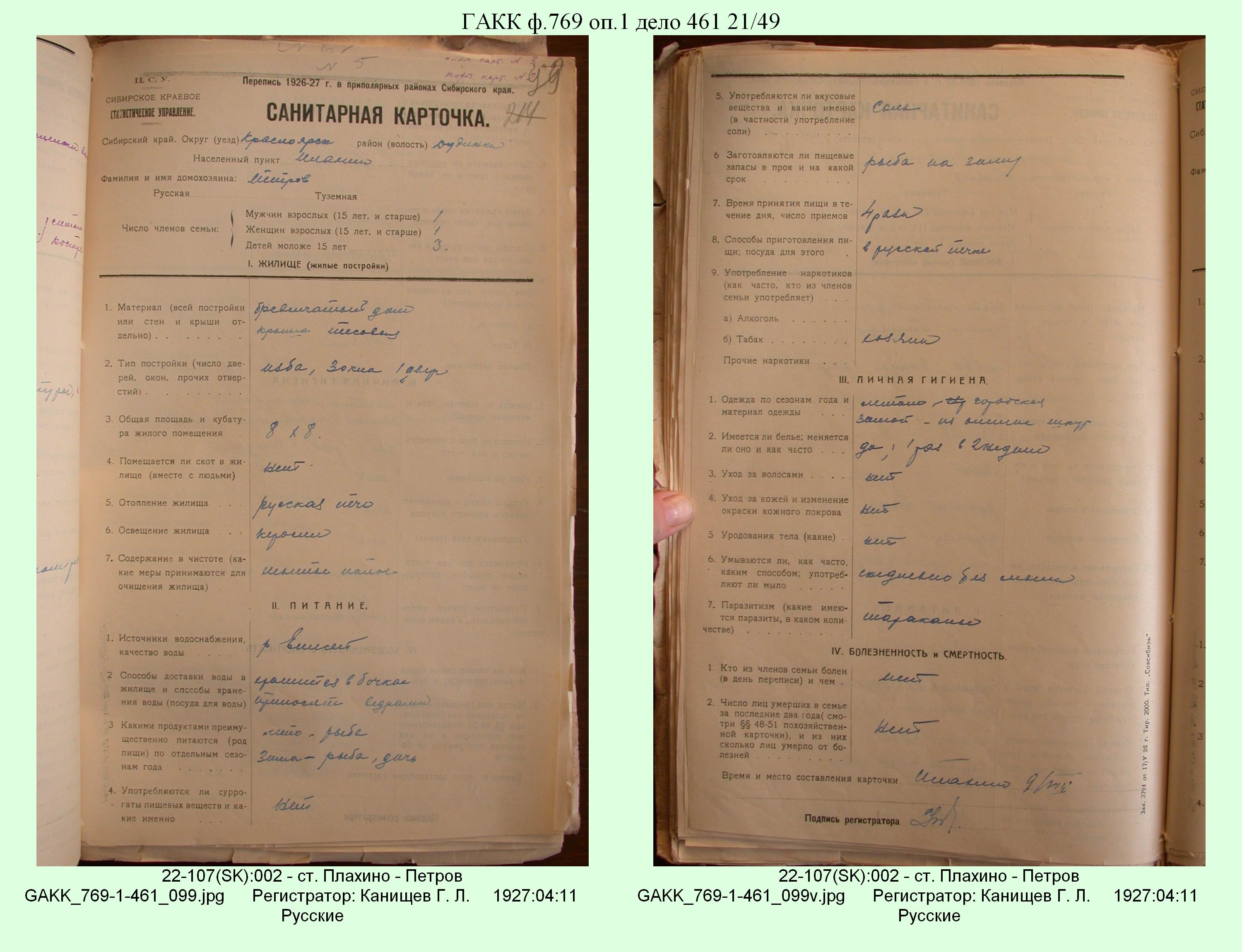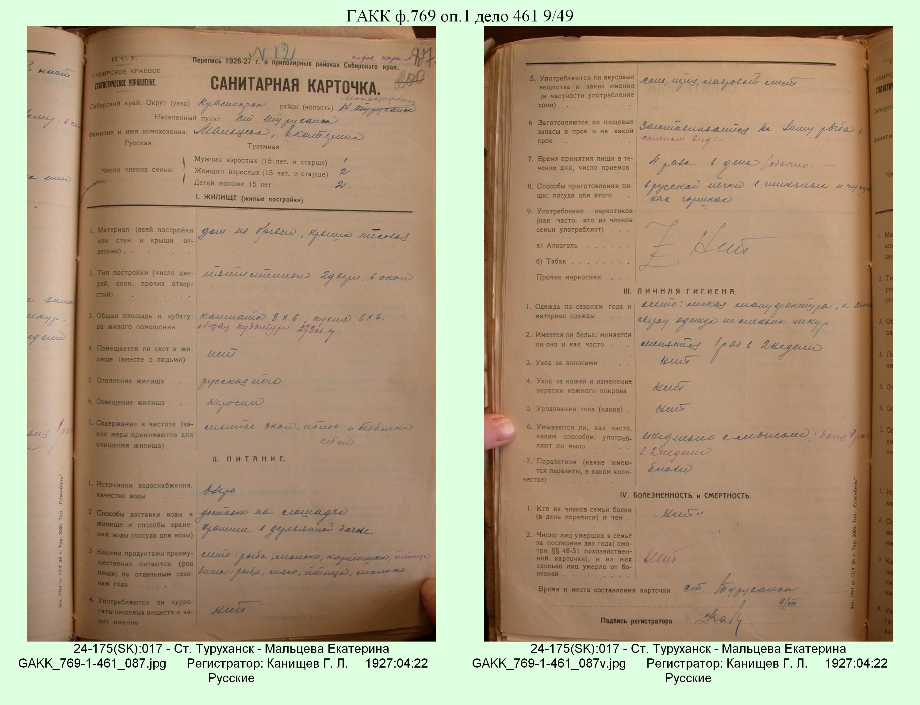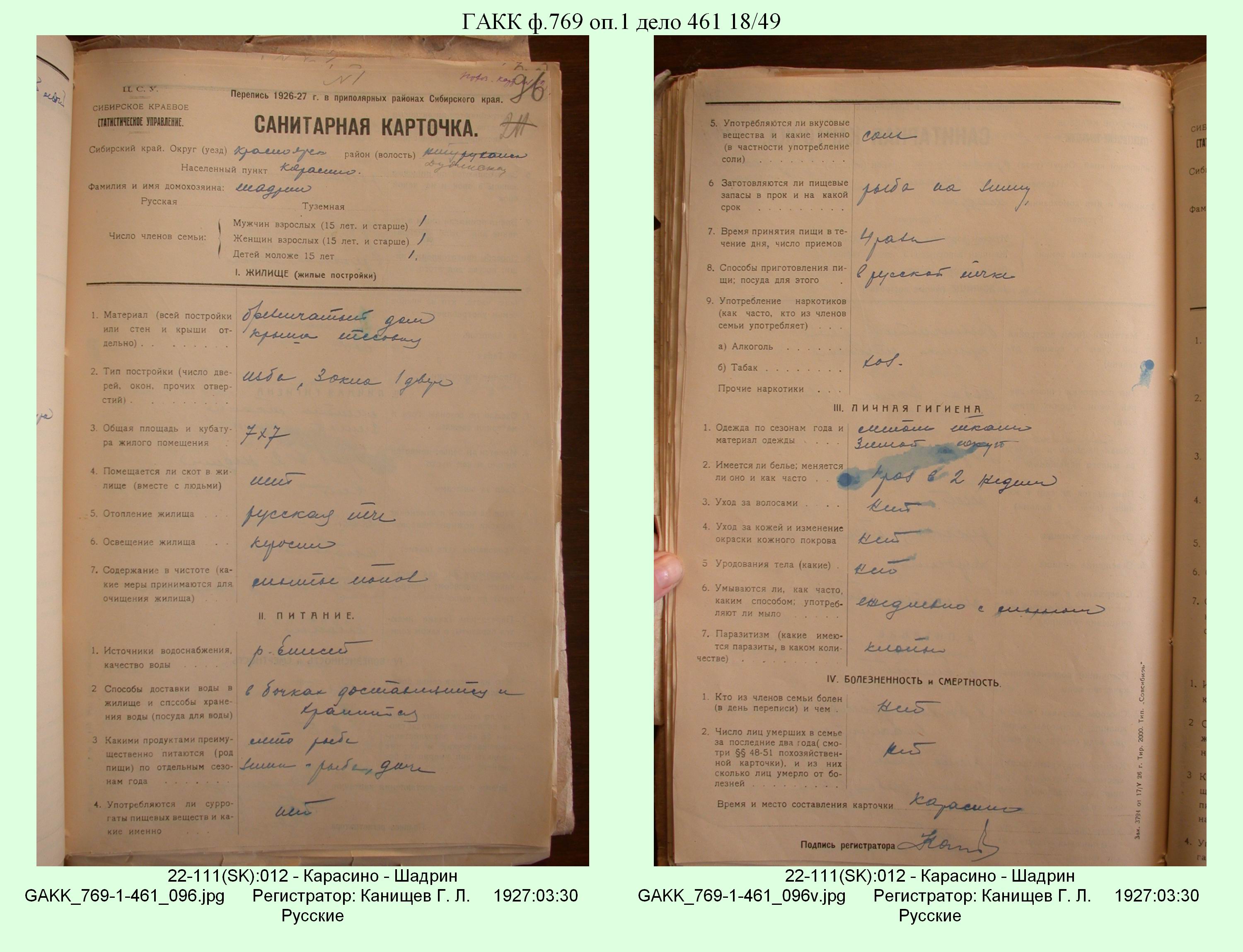 Маршрут и документы по переписи К.Л.Канищева (IV и V участки)