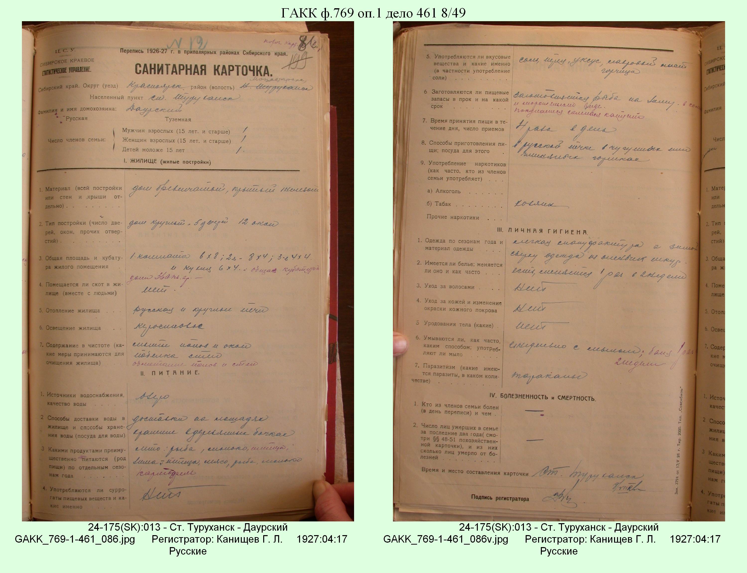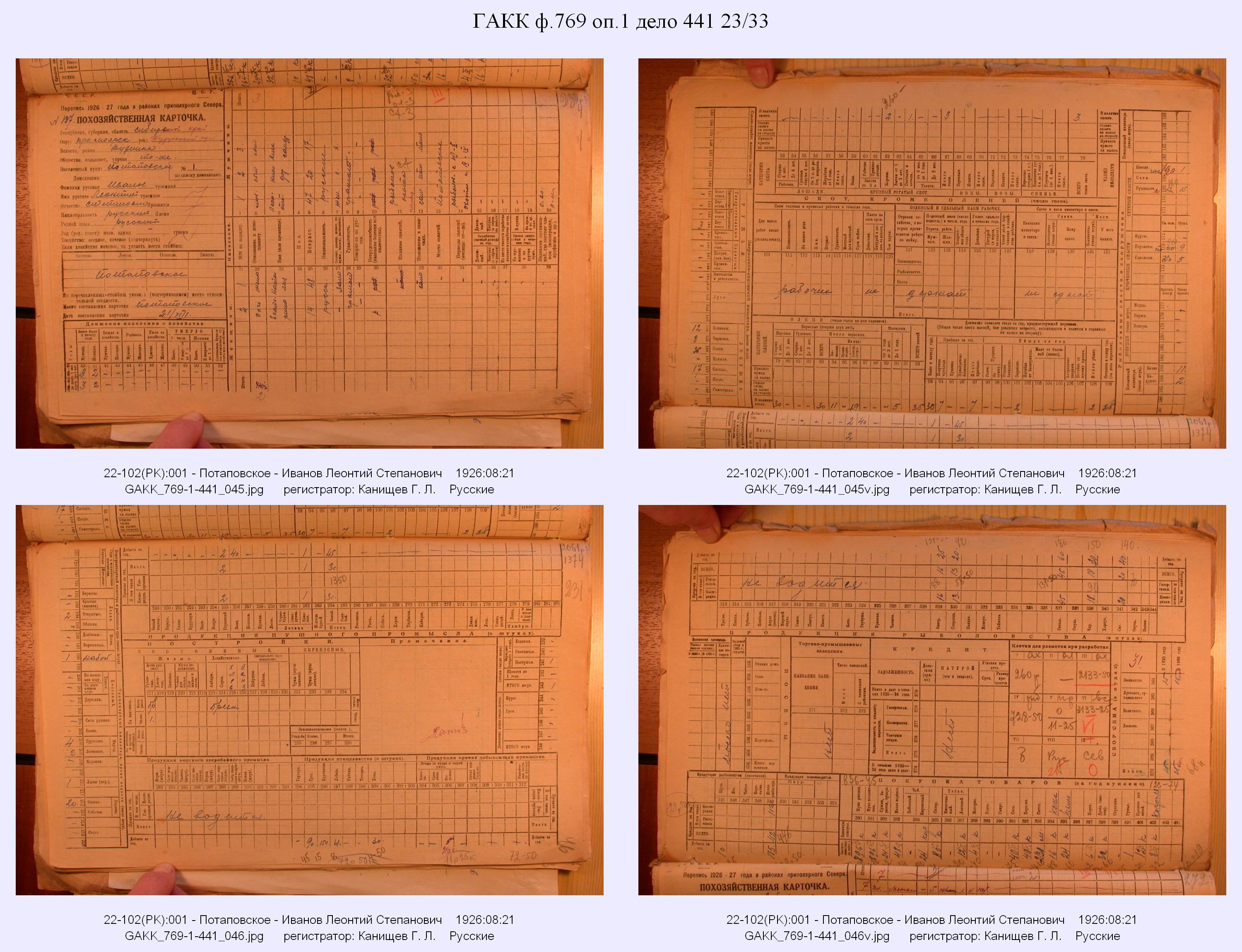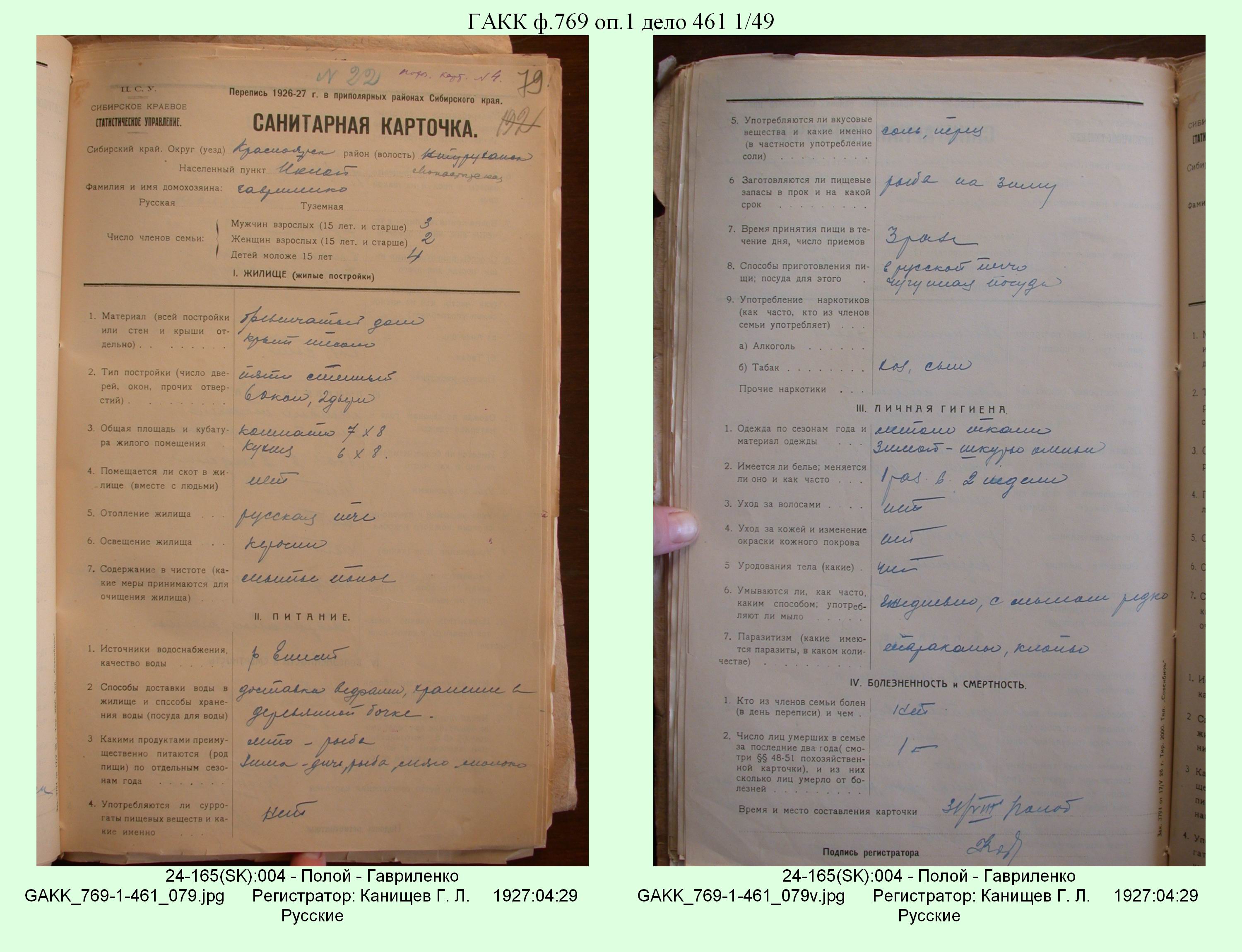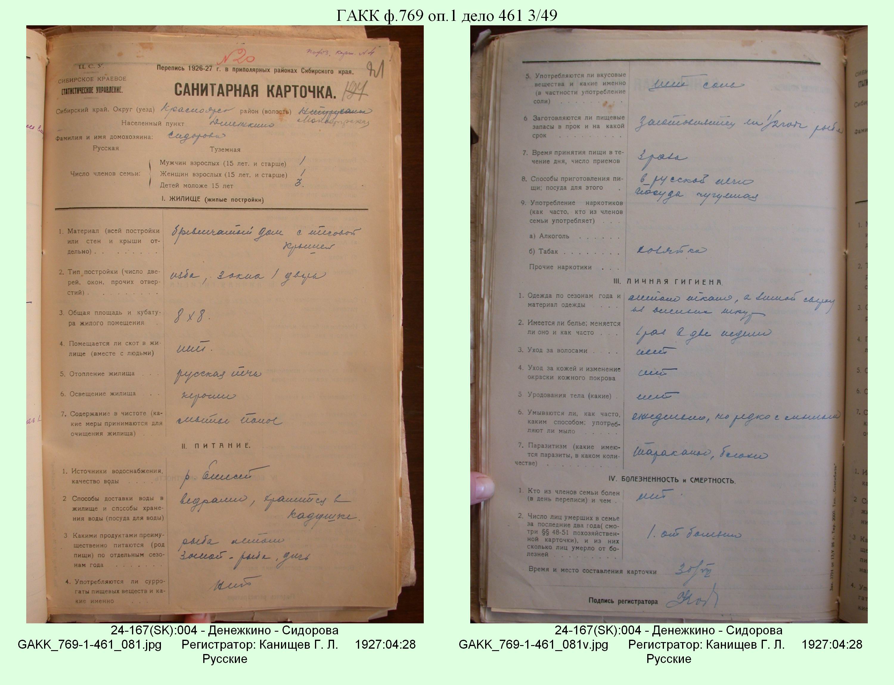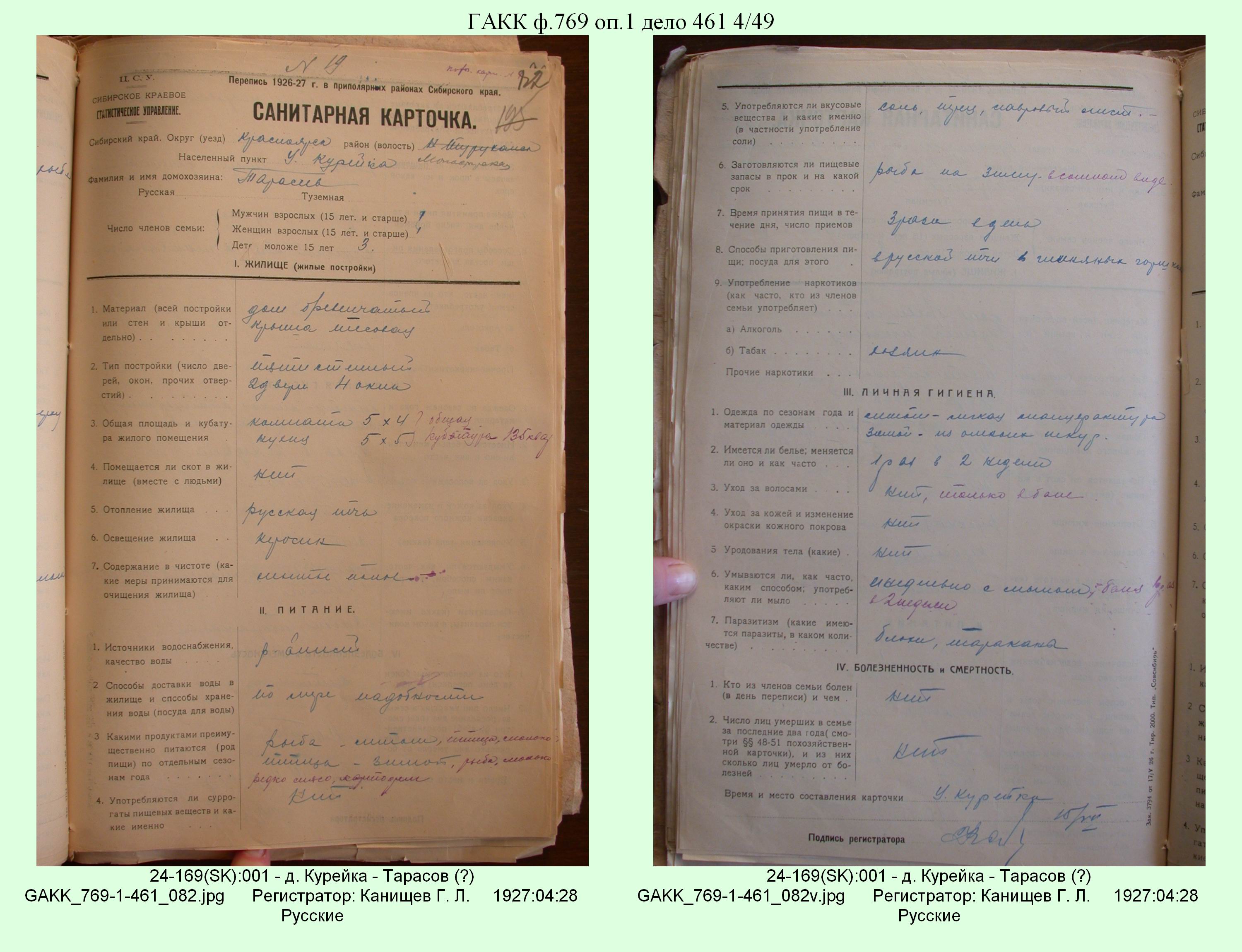 Маршрут и документы по переписи К.Л.Канищева (IV и V участки)