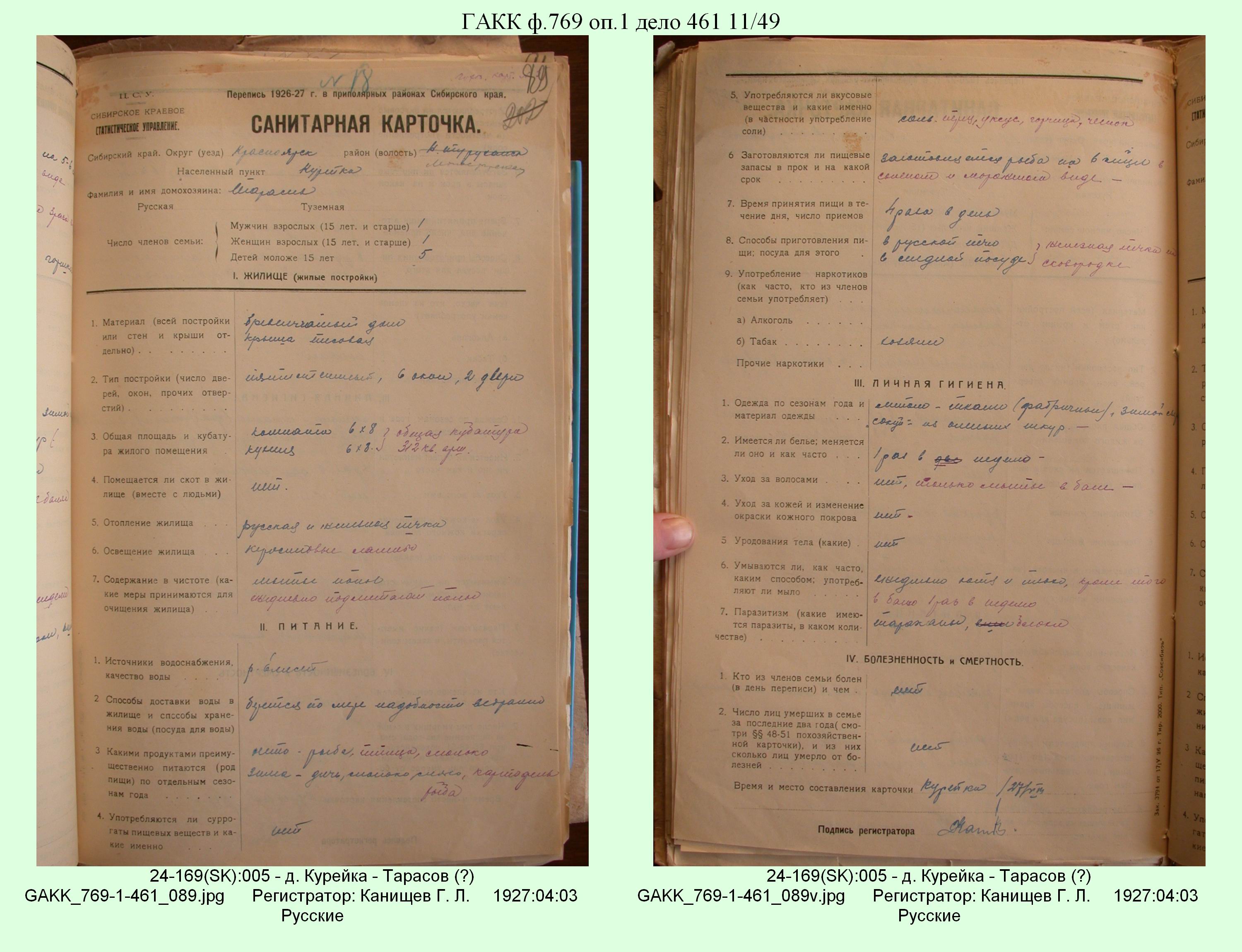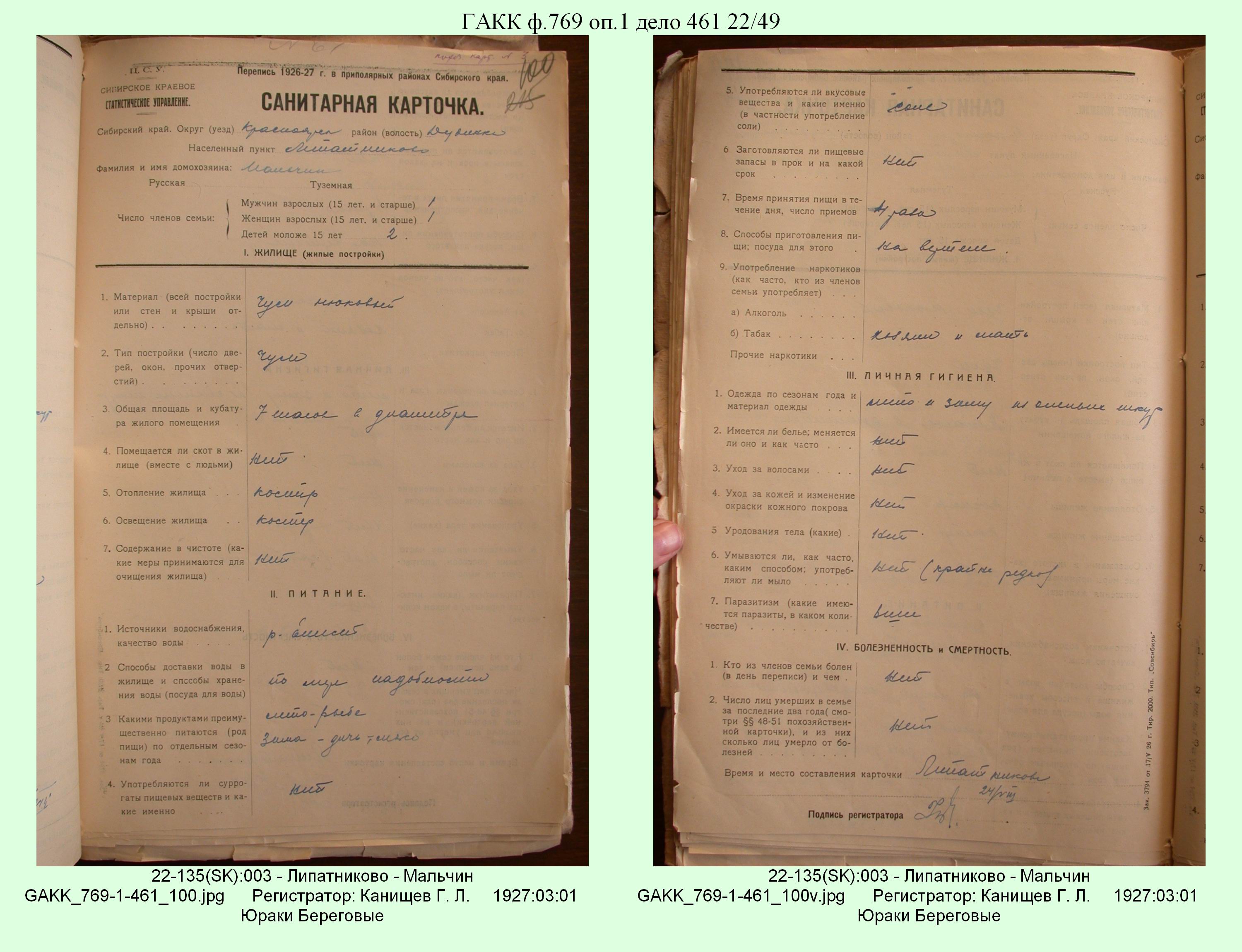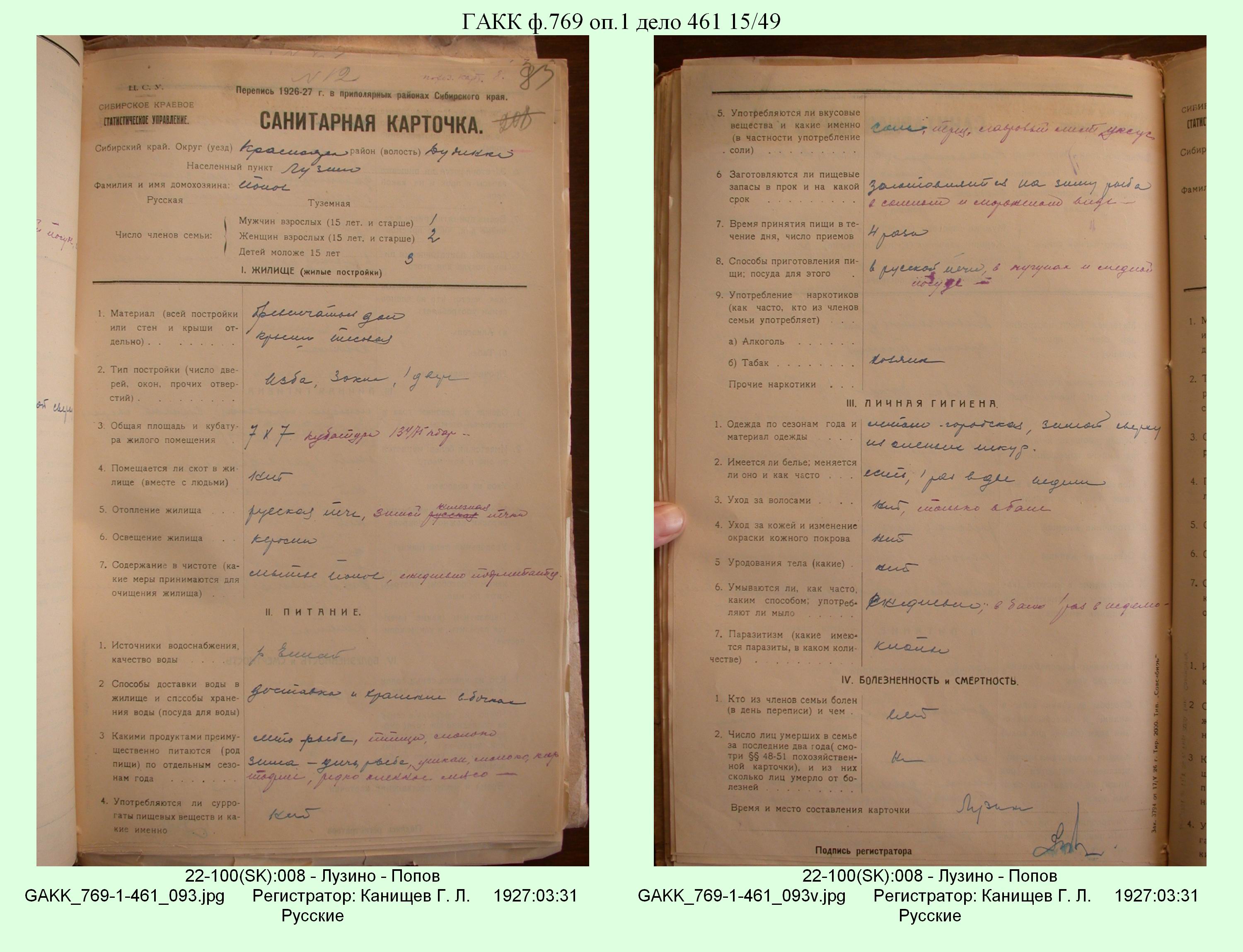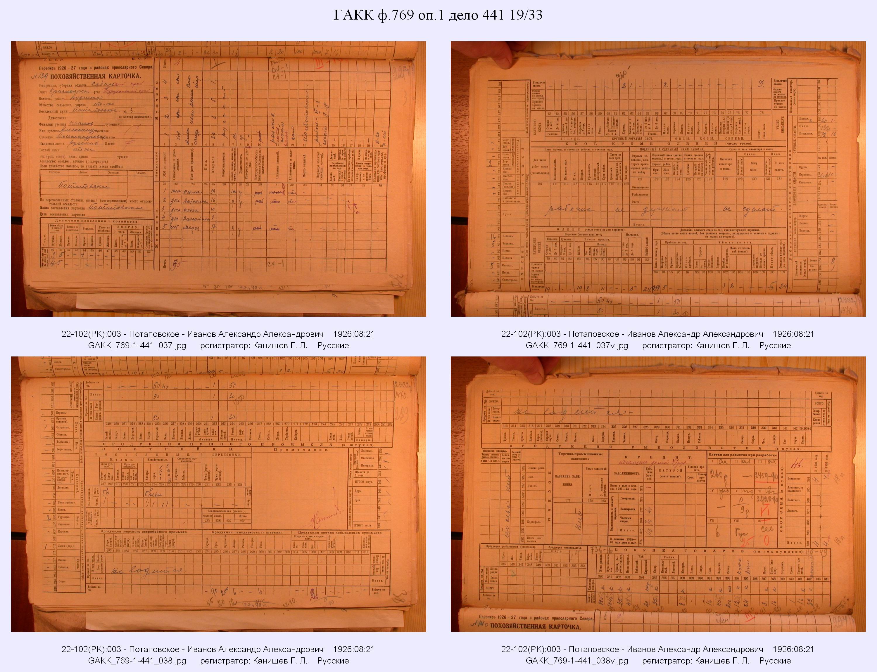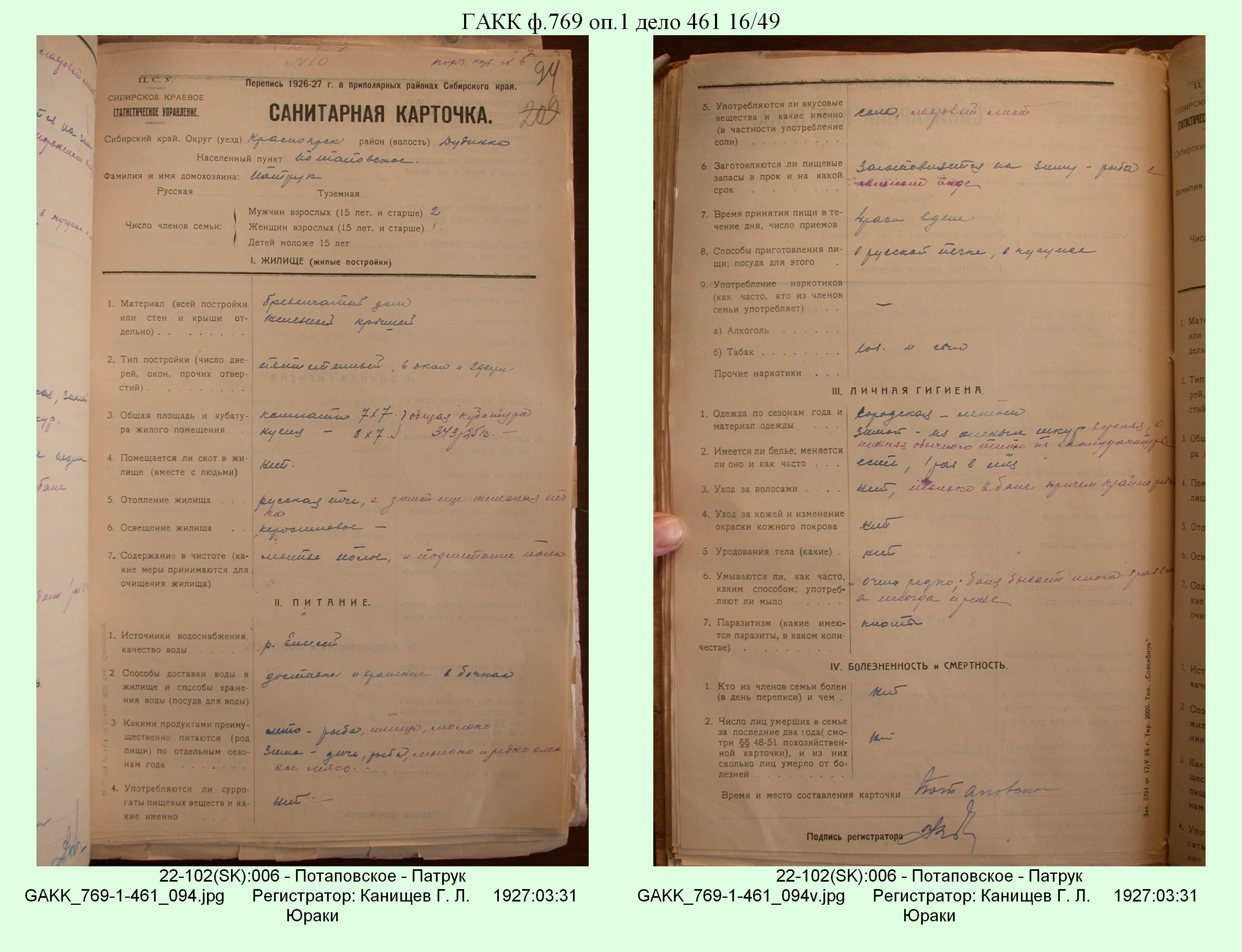 Маршрут и документы по переписи К.Л.Канищева (IV и V участки)