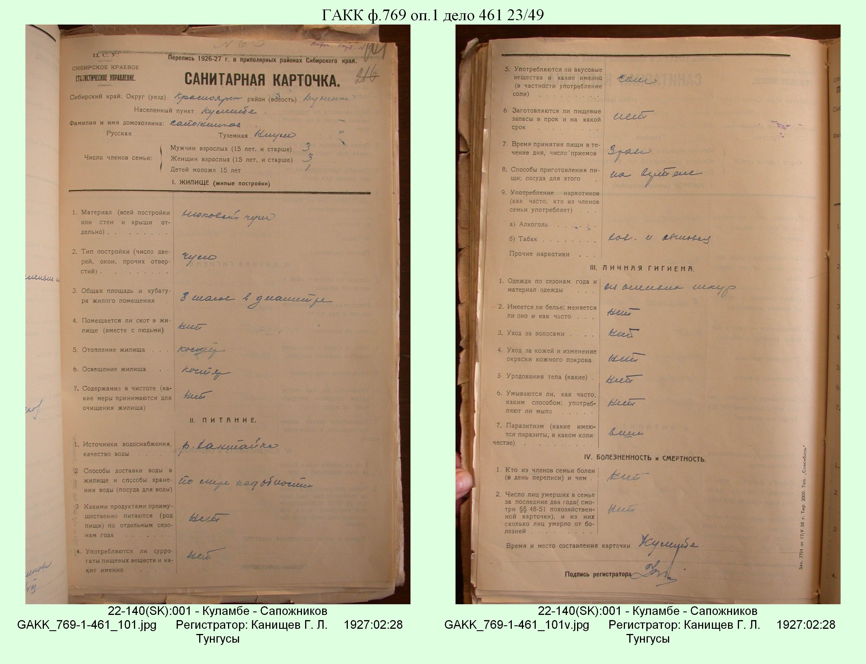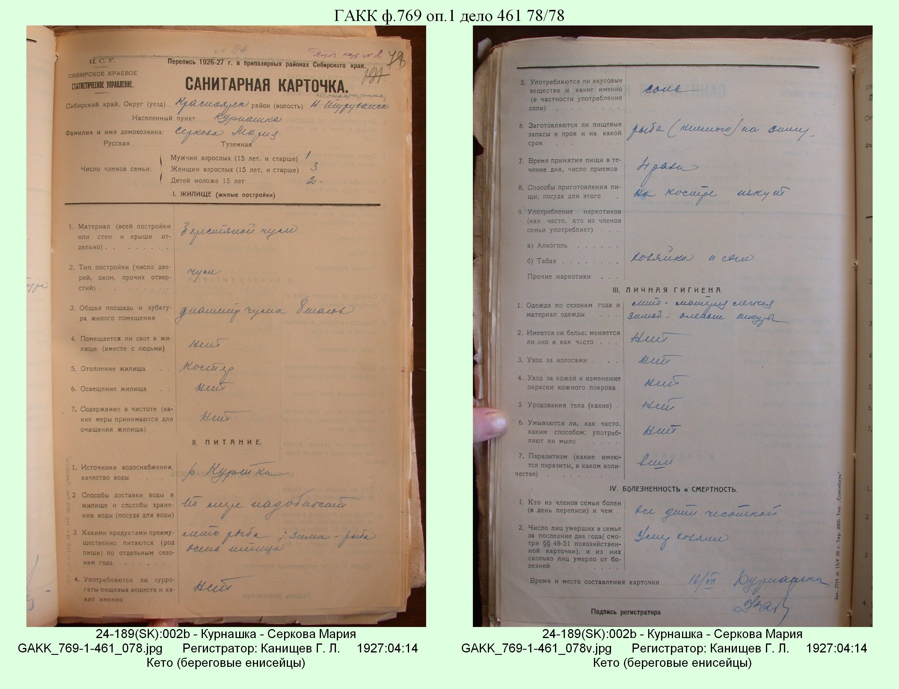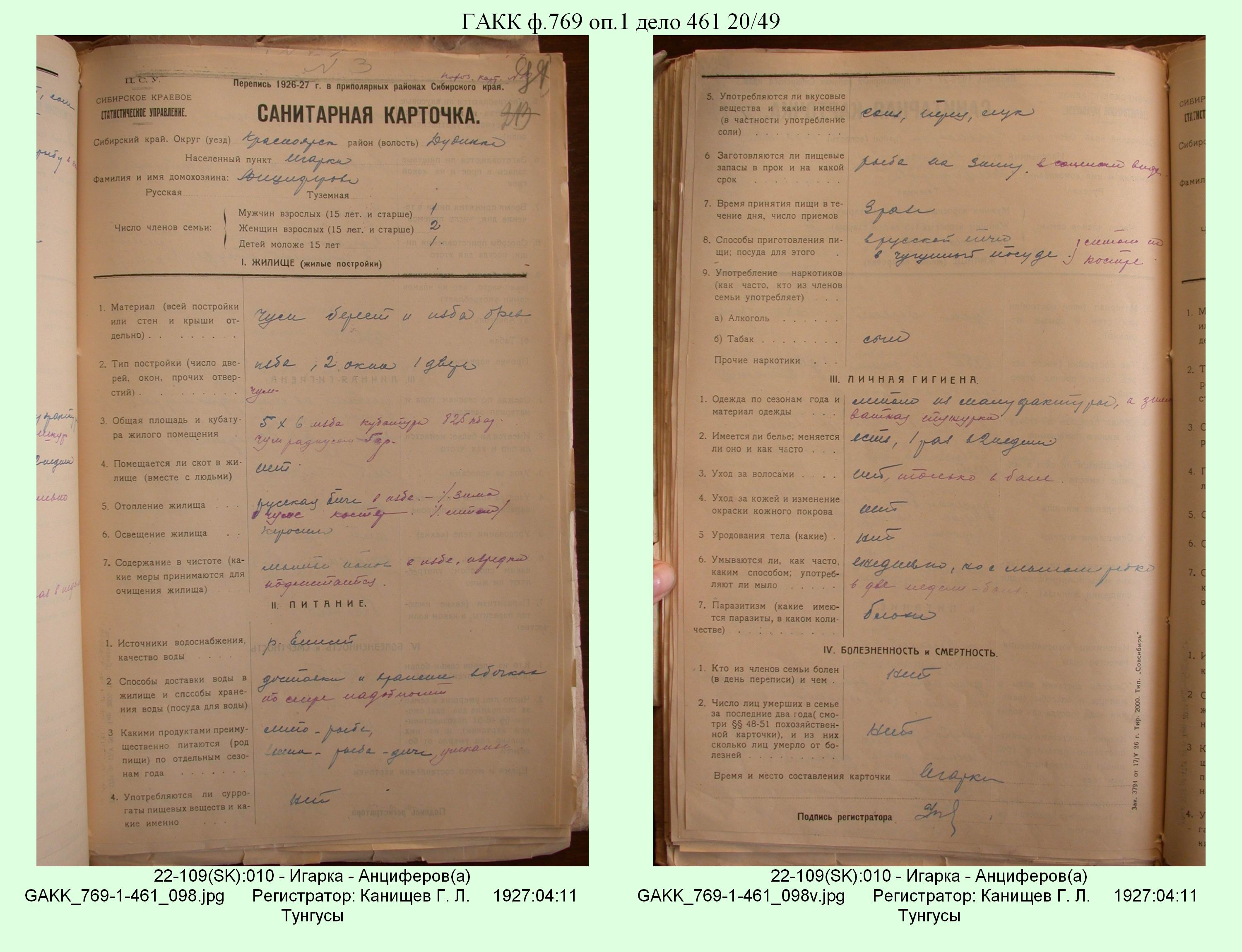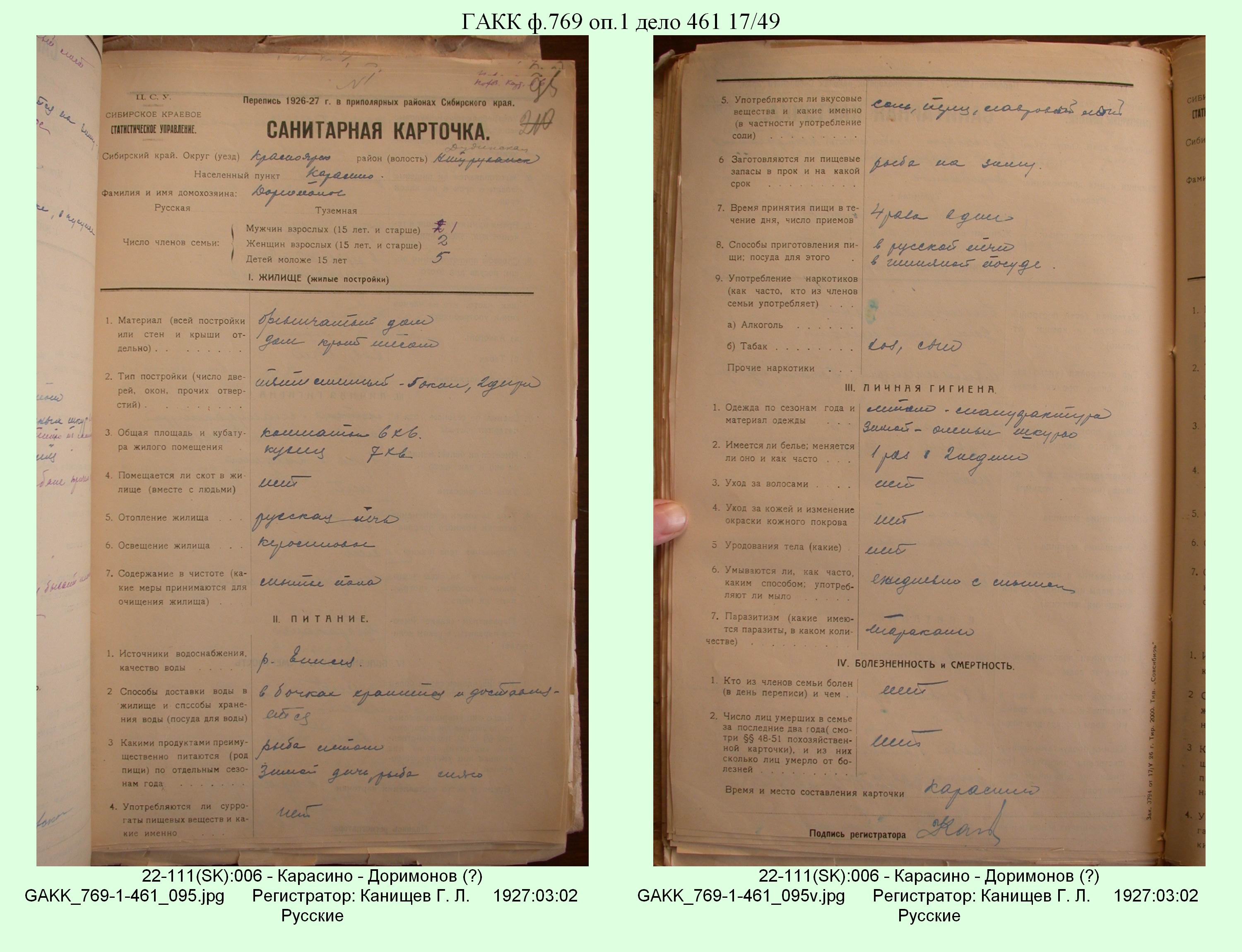 Маршрут и документы по переписи К.Л.Канищева (IV и V участки)