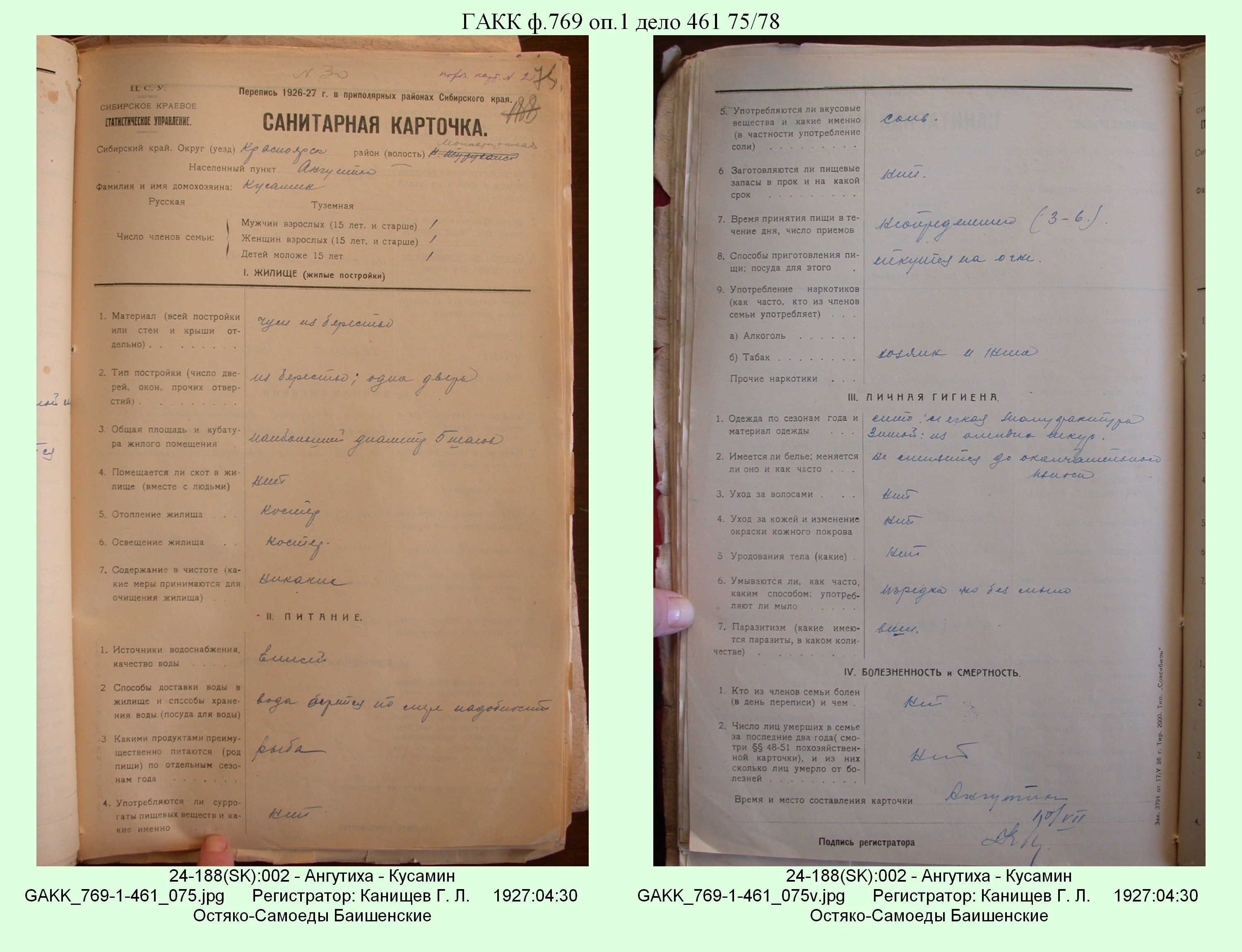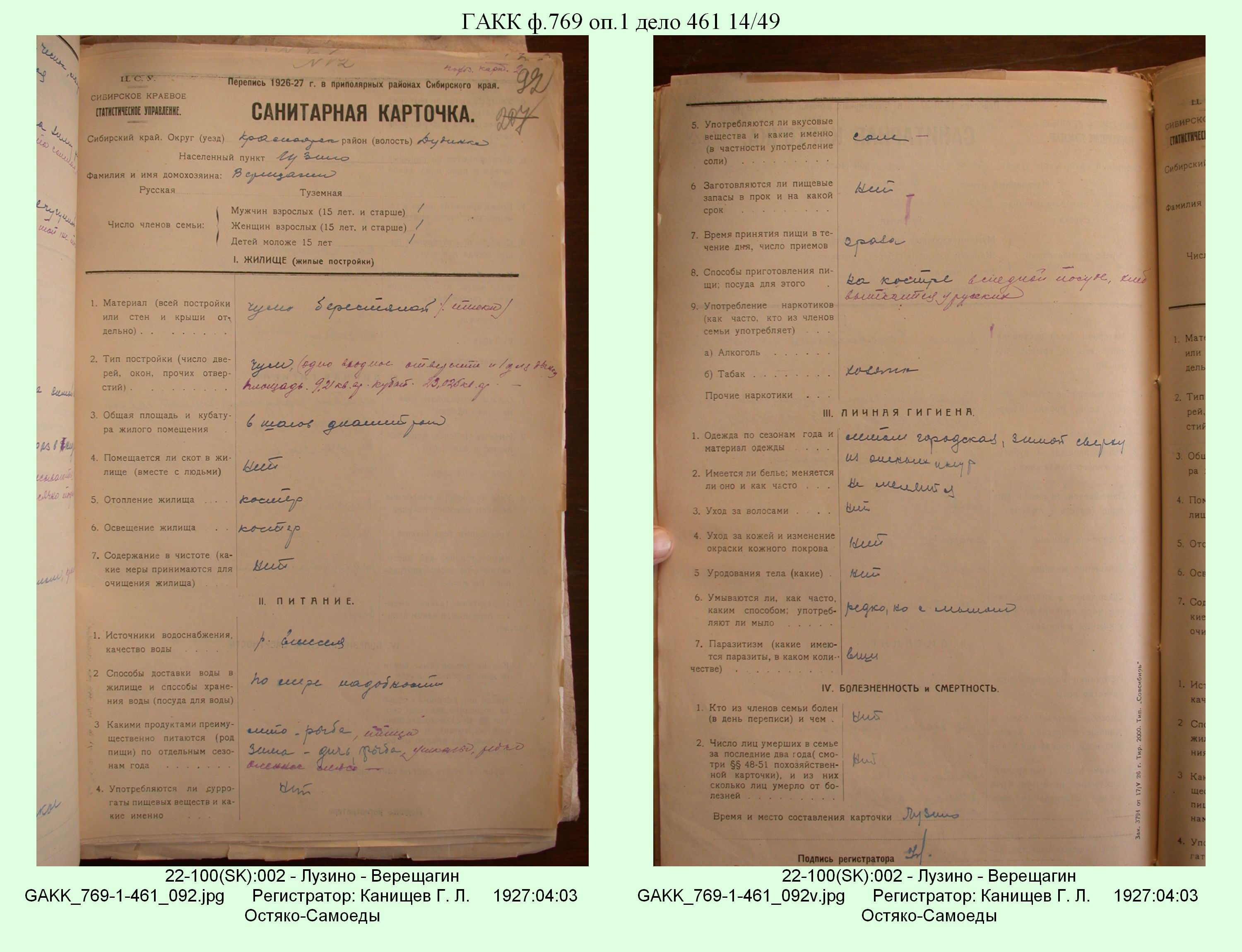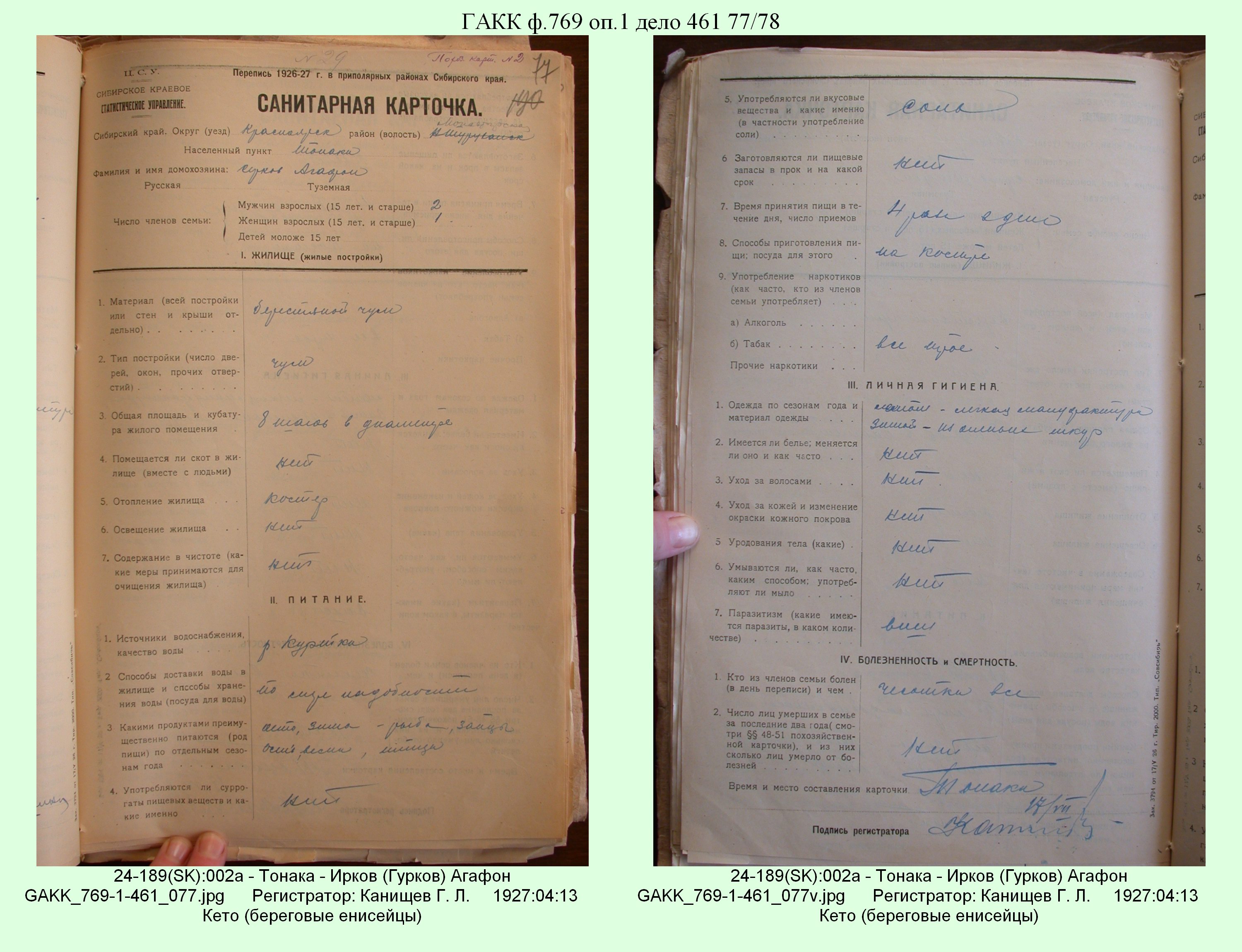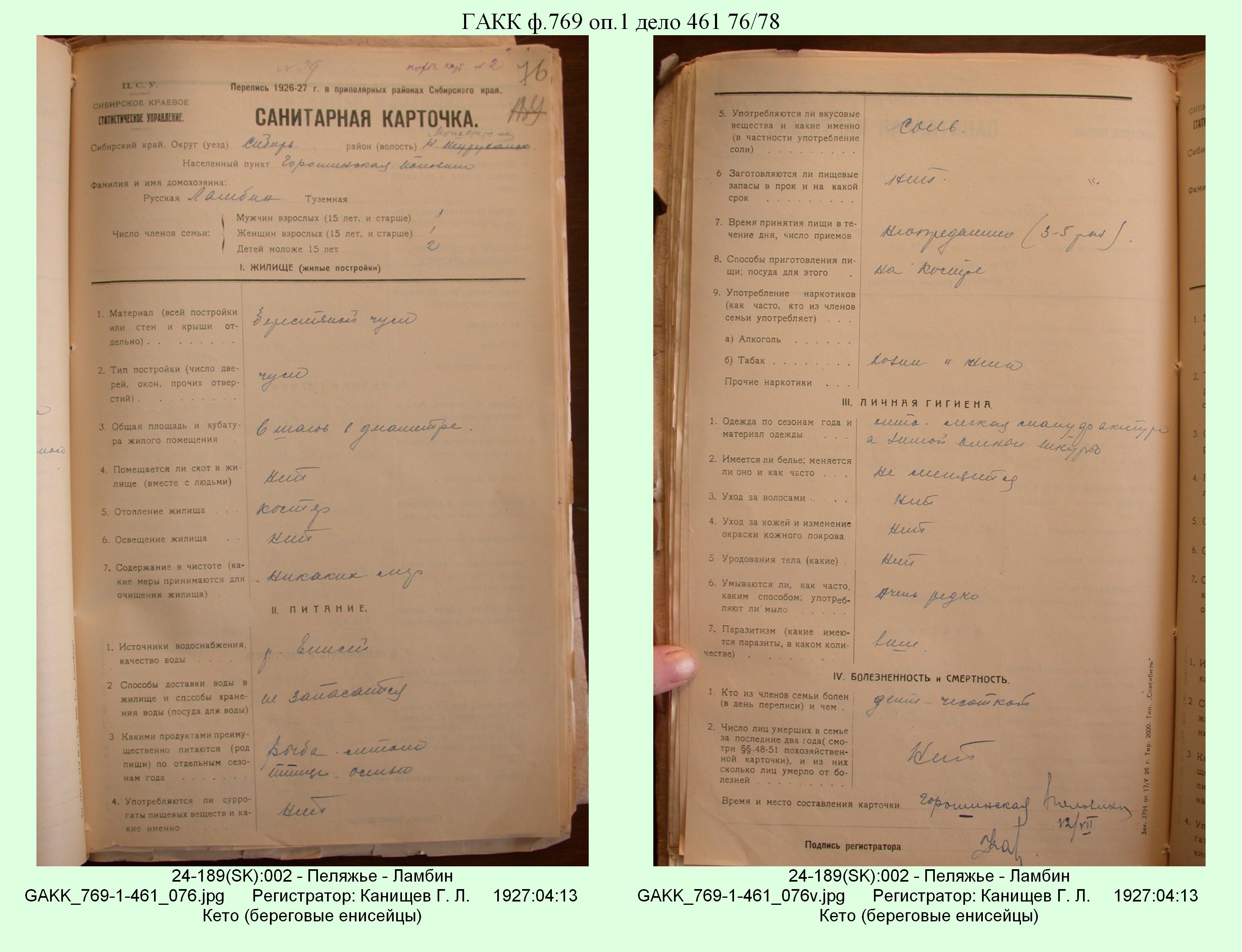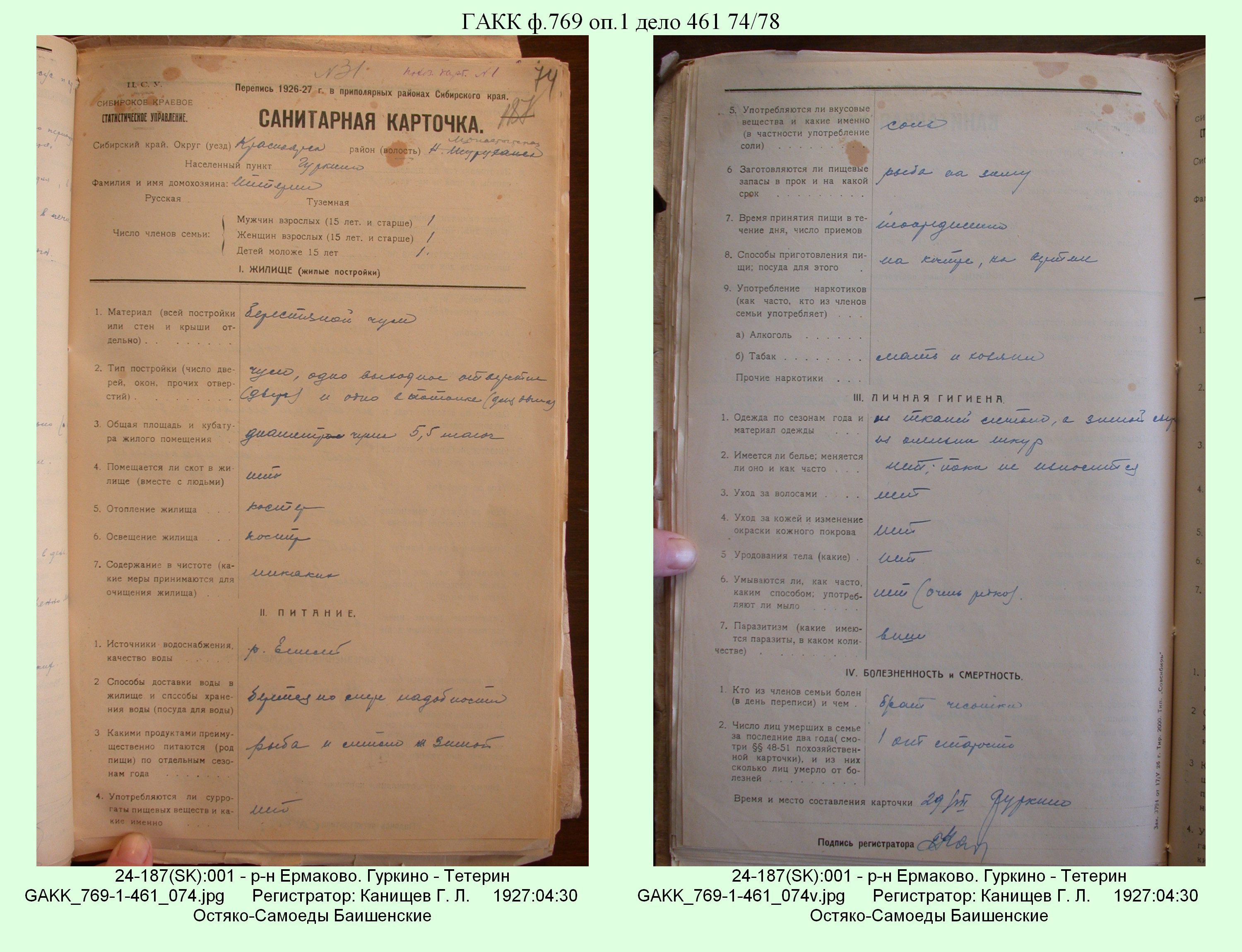 Маршрут и документы по переписи К.Л.Канищева (IV и V участки)