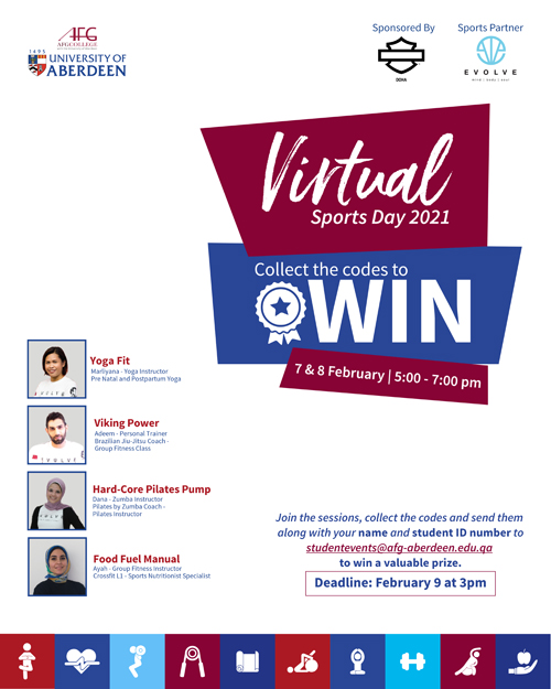 Join the sessions, collect the codes and send them to studentevents@afg-aberdeen.edu.qa with your name and student ID number to win valuable prizes.