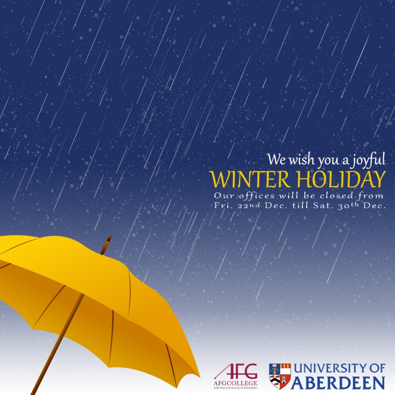 Winter Holidays 04 December 2017 2017-12-04 University of Aberdeen University of Aberdeen Our offices will be closed from Friday 22 December - Saturday 30 December