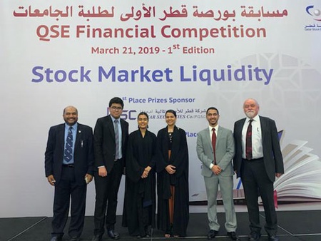 Qatar Stock Exchange (QSE) concluded the 1st Financial Competition for University students on Thursday, March 21st. The event was aimed at promoting investment awareness among University students. The participating students were required to carry out a basic analysis on stock market liquidity, identifying and discussing factors affecting liquidity with recommendations for improvements.