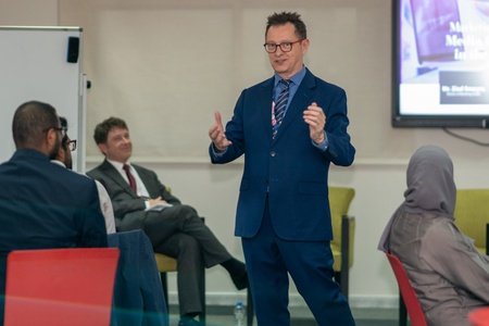 Our recent workshop, led by industry experts Mr. Ziad Smayra, Director of Marketing at beIN, Prof. Chris Collins, Head of School and Chair in Music at the University of Aberdeen and Stephen Fettes, Lecturer at AFG College with the University of Aberdeen, explored the latest trends and best practices in the dynamic communications field.