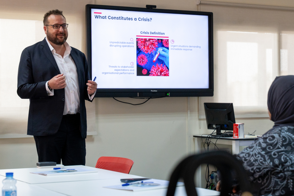 The Impact of Communication on Crisis Management workshop, led by Justin Kerr-Stevens, Executive Director at the Middle East Public Relations Association, and Stephen Fettes, Lecturer, brought together professionals, students, and leaders to explore effective crisis communication strategies. The session examined how leadership, human behaviour, and global frameworks influence decision-making and response during high-pressure scenarios. Attendees left with practical tools and insights to enhance their communication approach in times of crisis.