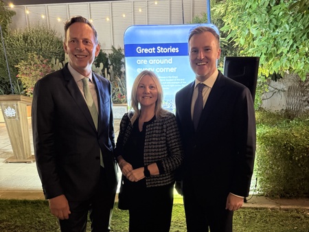 AFG College Principal, Dr Julie Cross, and Director of Public Affairs, Michael Harris, joined Deputy British Ambassador Duncan Hill at a British Embassy gathering held to welcome visiting parliamentarians and delegates attending the Doha Forum.