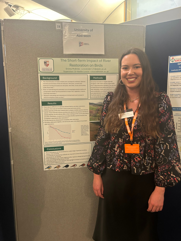 The event attracted attendees from across the country to showcase their research to politicians, policy makers and academics. It was a privilege to present my research which evaluated the Cattie Burn Restoration Project; a modern and ambitious method of conservation which pursued ecosystem recovery and the shared benefit of traditionally conflicting stakeholders. My research aimed to understand the impacts, both positive and negative, that this project may have on birds in the short term. The event was an incredible opportunity to be able to represent the University of Aberdeen, and conservation in the North-East of Scotland at a National level.