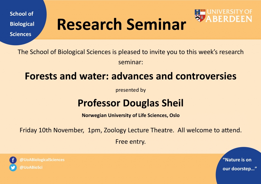 Professor Douglas Sheil will give a talk on "Forests and water: advances and controversies"