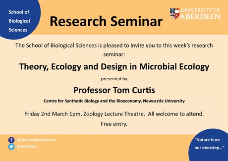 Professor Thomas Curtis from the Centre for Synthetic Biology and the Bioeconomy at Newcastle University will deliver the next talk in the SBS Friday research seminar series.
