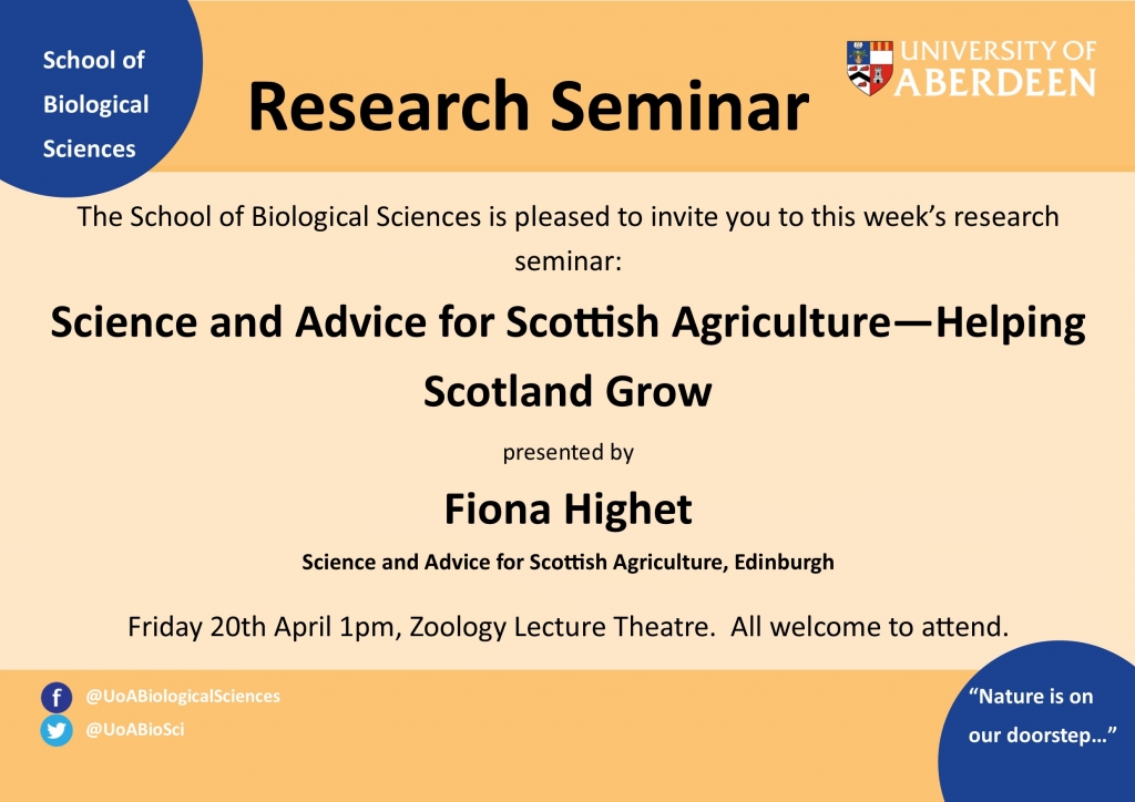 Fiona Highet from Scottish Government gives us an insight into her work as Entomology Manager at Science and Advice for Scottish Agriculture (SASA) at the SBS Friday research seminar.